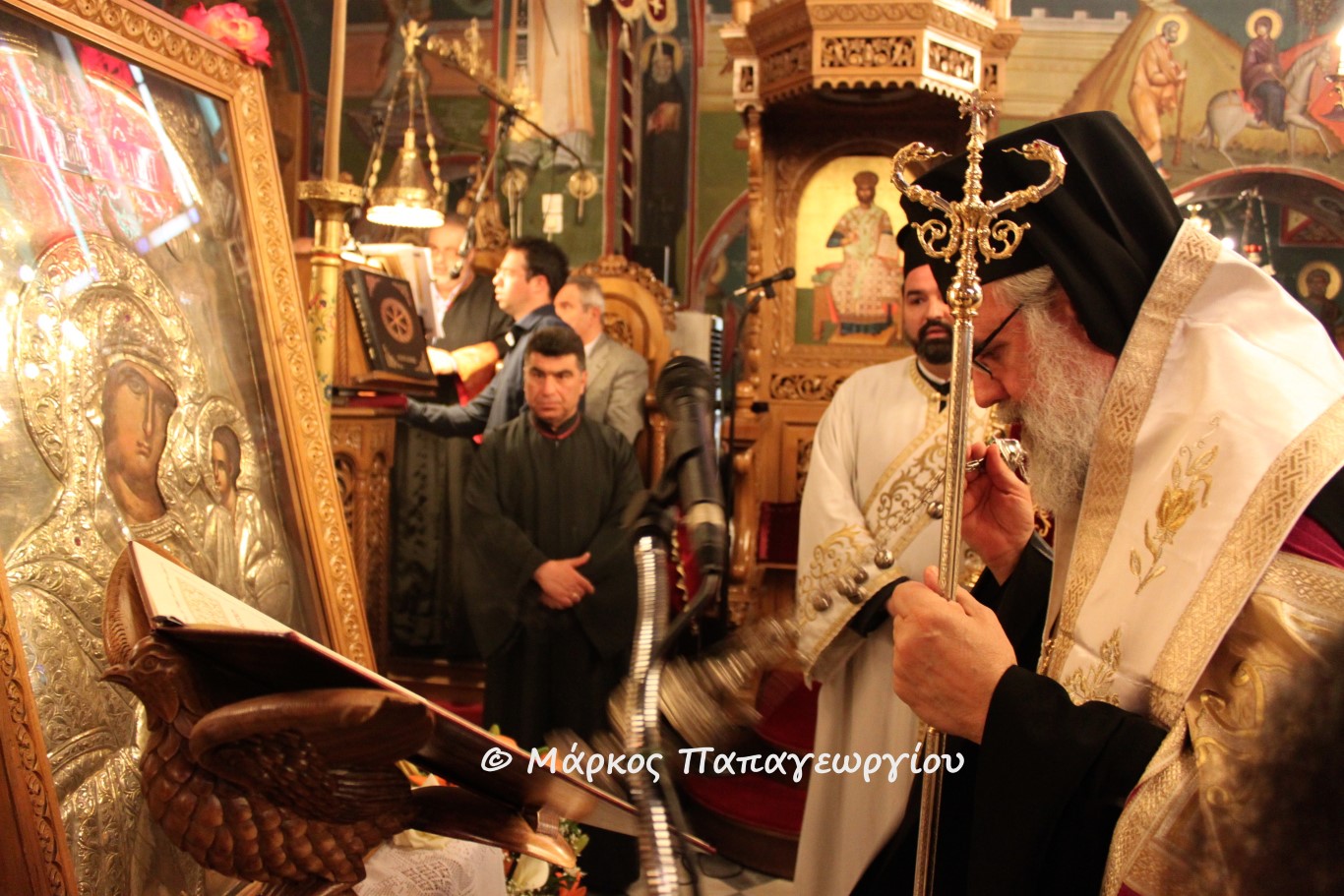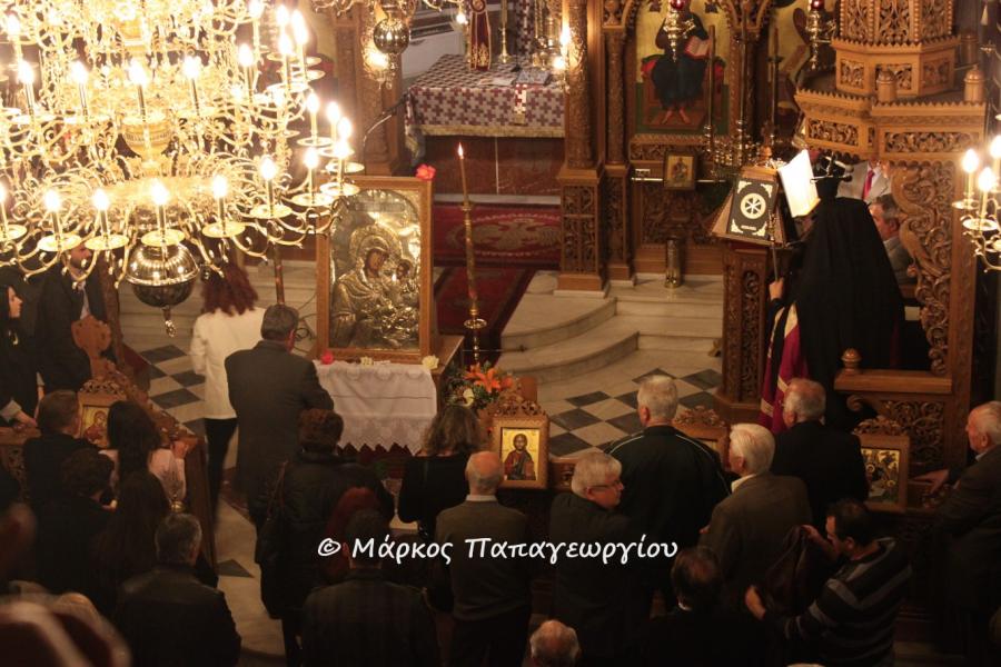 Τον Σεβασμιώτατο υποδέχθηκαν οι ιερείς του Ναού π. Θεόδωρος Παπαγιάννης, π. Δημήτριος Τζίμας και π. Δημήτριος Ζαχαρόπουλος, και ο φιλόχριστος λαός που κατέκλυσε τον ιστορικό ναό του Ιλίου για να αναπέμψει δεήσεις προς την Υπέρμαχο Στρατηγό, Υπεραγία Θεοτόκο.