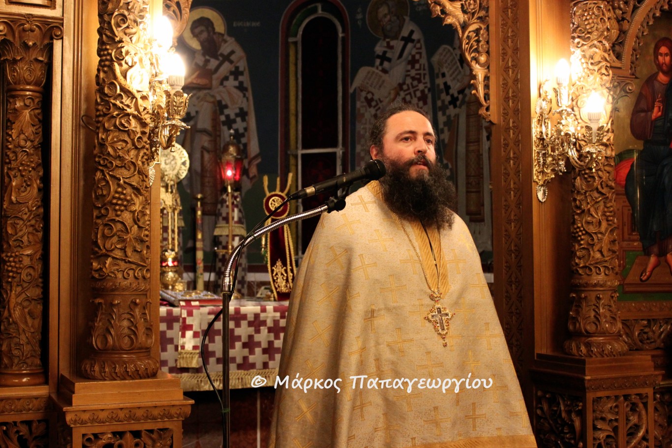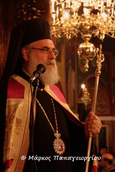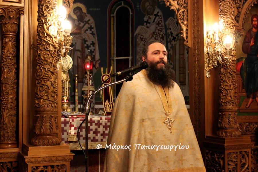 Ο κ. Αθηναγόρας αναφερθείς στο κήρυγμά του στον στίχο των Χαιρετiσμών «Χαῖρε, στολὴ τῶν γυμνῶν παρρησίας», τόνισε την γύμνια των πρωτοπλάστων μετά την έξωση από τον Παράδεισο. «Οι άνθρωποι απογυμνώθηκαν από κάθε δυνατότητα επικοινωνίας με τον Θεό. Και το ερώτημα του Θεού προς τον Αδάμ "πού κατάλαβες ότι είσαι γυμνός;" έμεινε αναπάντητο για αιώνες. Γυμνοί και απορημένοι στο περιθώριο. Εμείς που πλαστήκαμε να γίνουμε συνδημιουργοί της φύσεως με τη χάρη του Θεού, στεκώμαστε γυμνοί και τετραχηλισμένοι. Και έρχεται η Παναγία δεχόμενη τον Κύριο στα σπλάχνα της και γίνεται το ιμάτιο που θα καλύψει την ανθρώπινη γύμνια. Με τη Σάρκωση του Θεού Λόγου καλύπτεται η γύμνια και το κενό στην αγάπη και την γνώση. Τώρα έχουμε το λαμπερό χιτώνα που φωτίζεται με το φως της Αναστάσεως του Κυρίου που καλούμαστε όλοι να φορέσουμε. Για να καλύψει τα πάθη και τις αδυναμίες μας και να γίνουμε λαμπροί. Η Παναγία είναι η αιτία αυτού του ενδύματος. Γι' αυτό προσευχόμαστε σε Αυτήν. Είναι η αιτία να ξαναβρούμε τη σχέση μας και επικοινωνία μας με τον Θεό.»