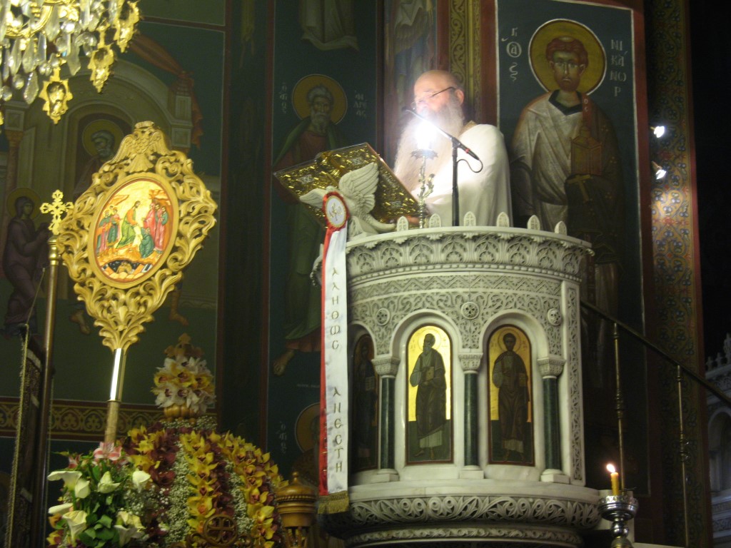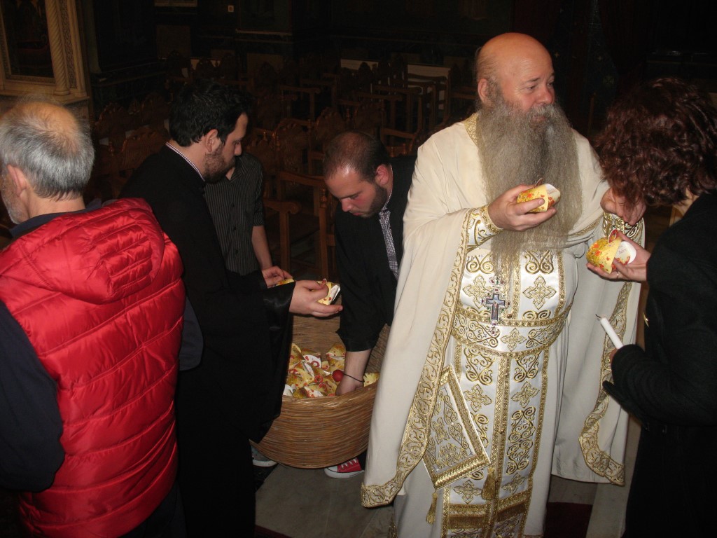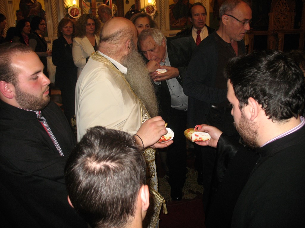 Διαβάστηκε το Ευαγγέλιο στα Ελληνικά, Λατινικά, Αγγλικά, Γερμανικά, Γαλλικά, Τούρκικα και τα Ισπανικά. Στο τέλος μοιράστηκε σε όλους το καθιερωμένο αυγό.