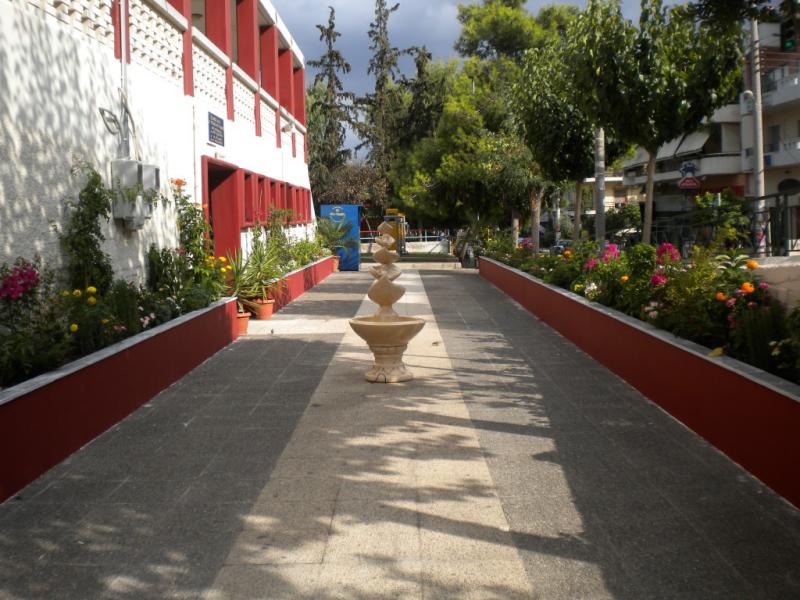 Στο πίσω μέρος του ναού, εκεί που είναι η είσοδος για την αίθουσα του πνευματικού κέντρου, όπου λαμβάνουν χώρα τόσες δραστηριότητες, φυτεύτηκαν λουλούδια και άλλα φυτά, ώστε να κοσμούν το χώρο της πλατείας.