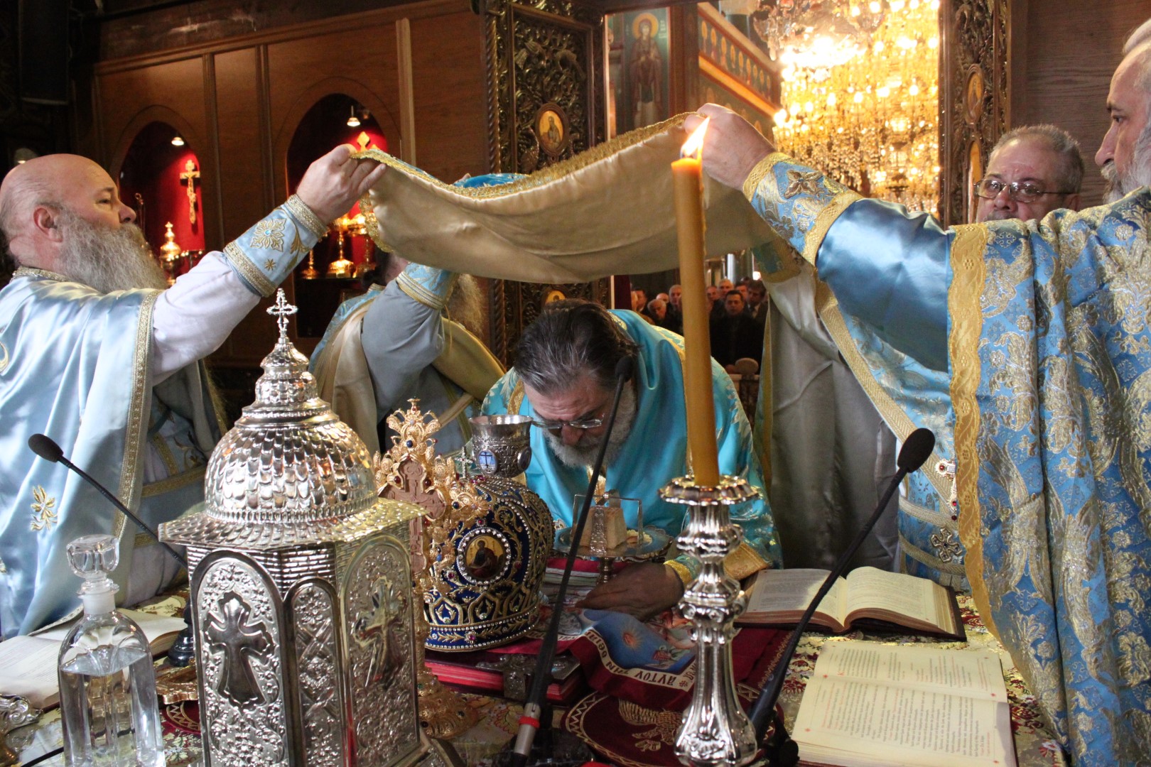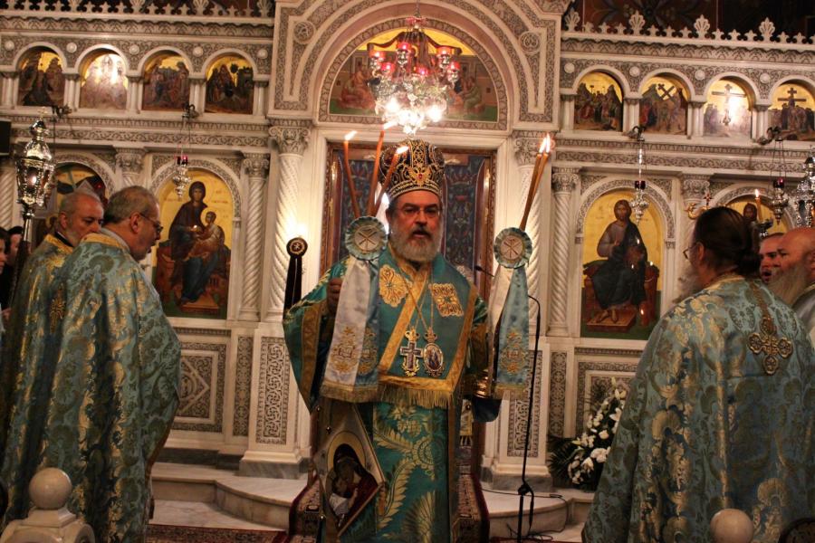 Η Αρχιερατική Θεία Λειτουργία τελέστηκε προεξάρχοντος του Σεβ. Μητροπολίτου Ηλιουπόλεως (Αιγύπτου) κ. Θεοδώρου και συλλειτουργούντων των εφημερίων του Ναού.