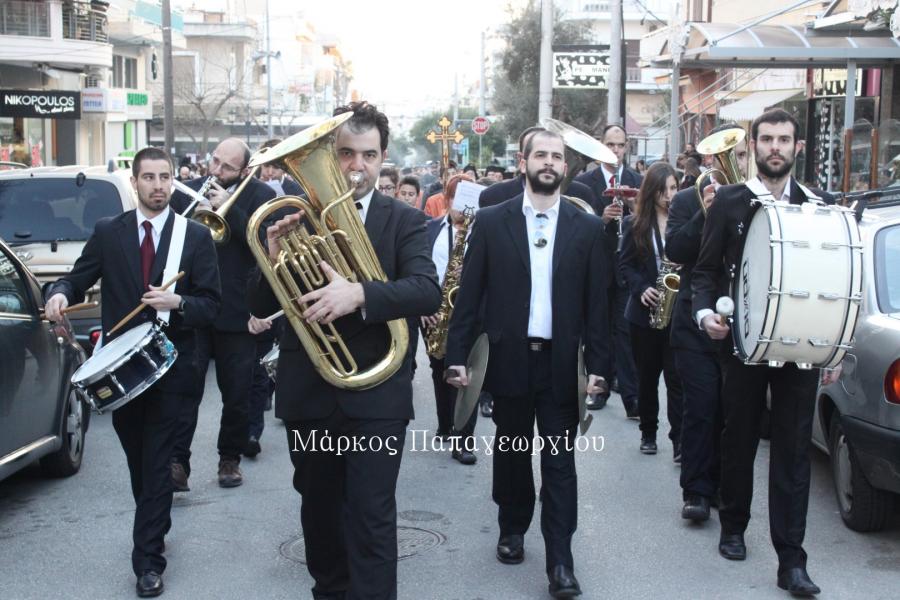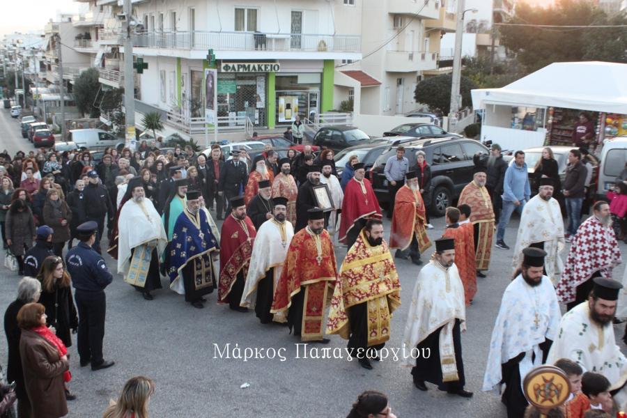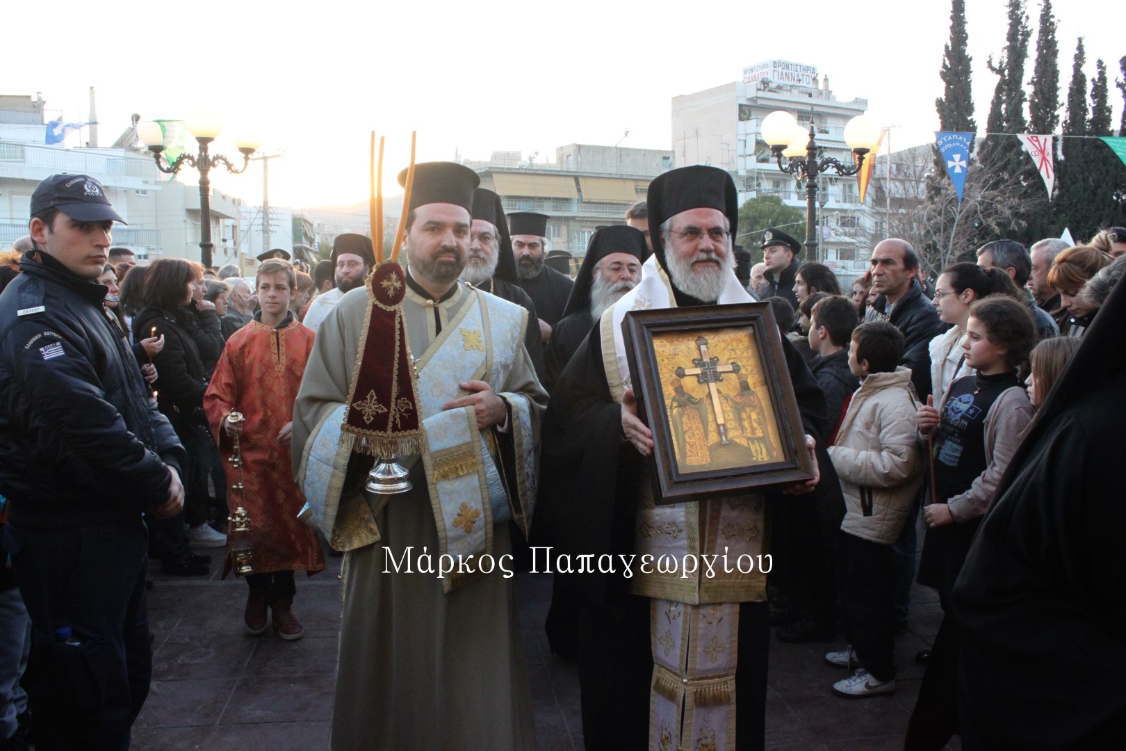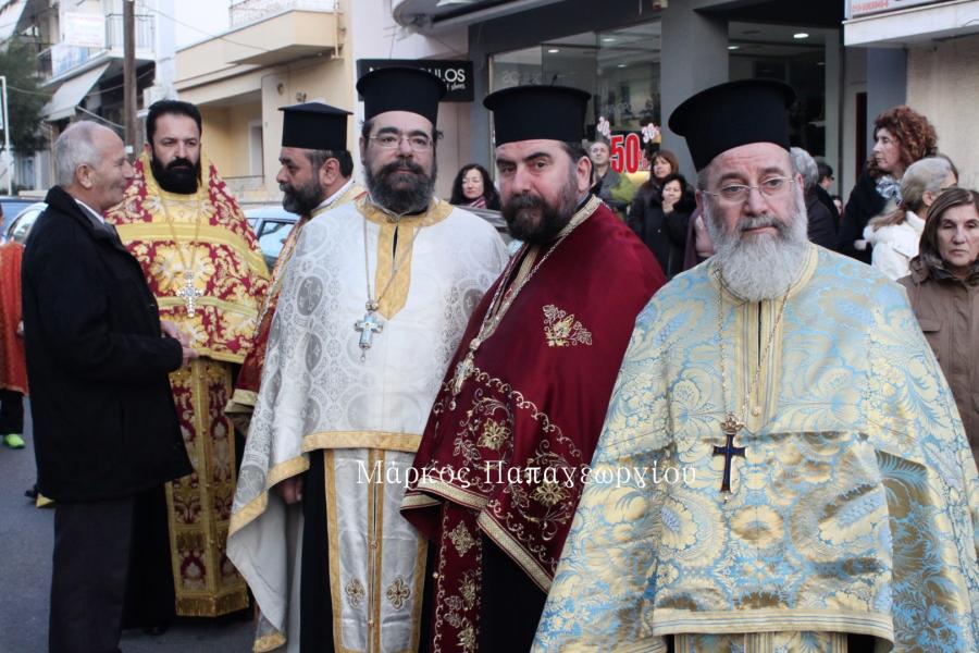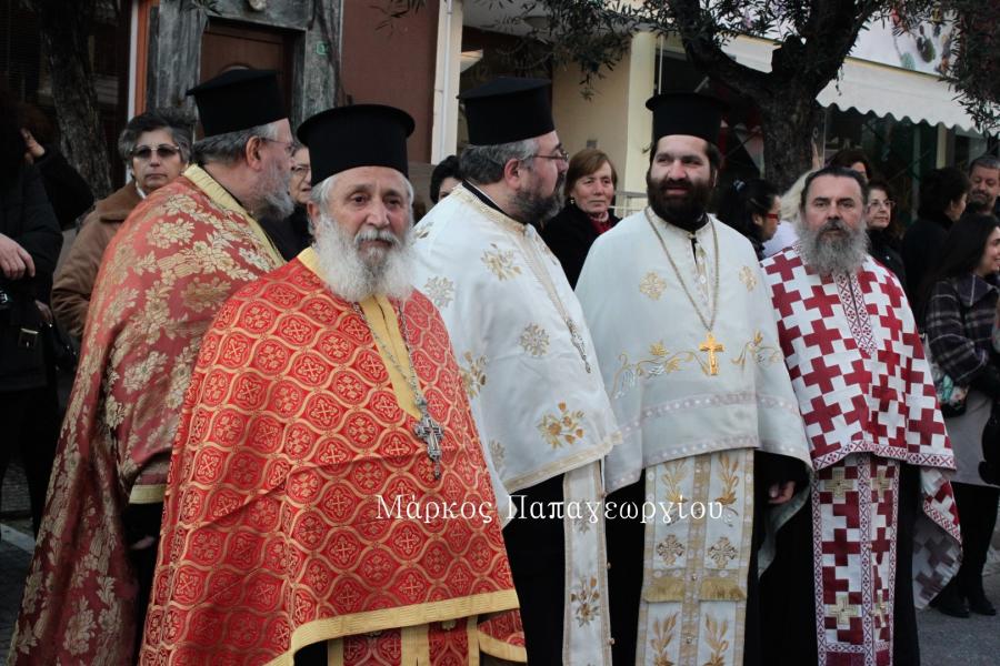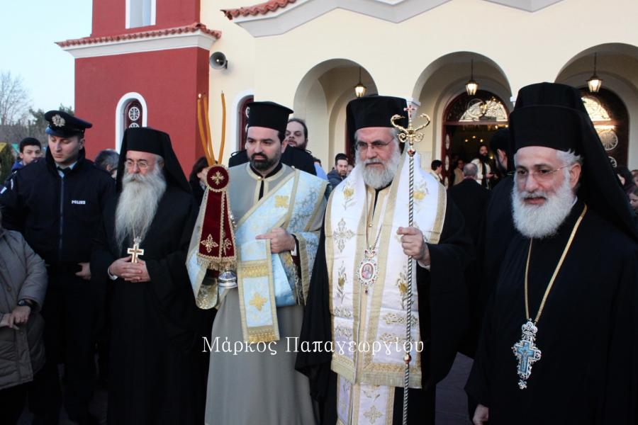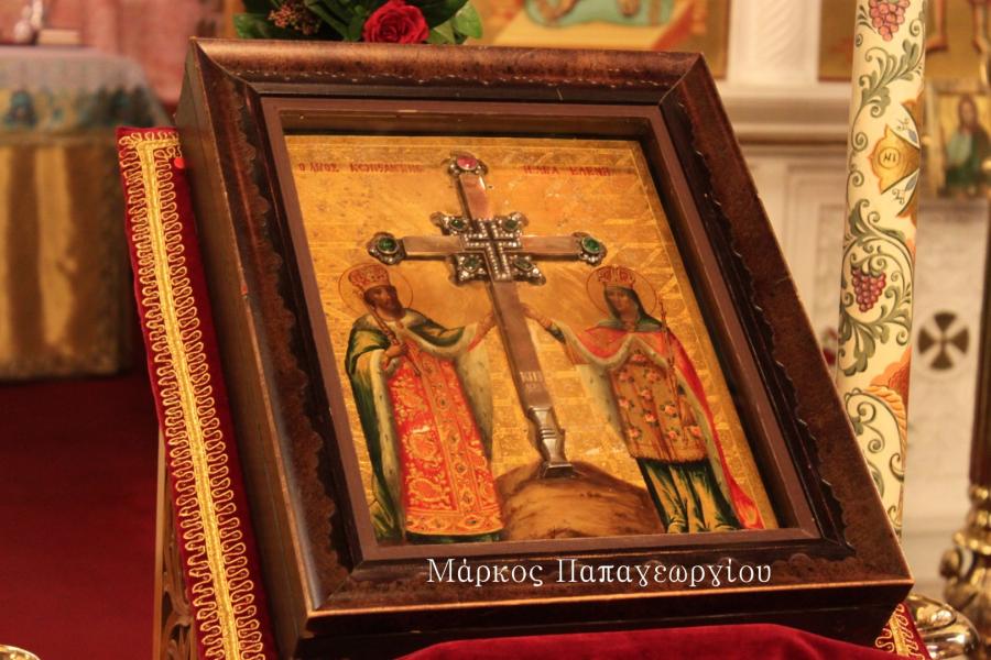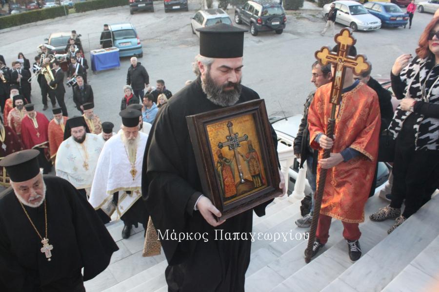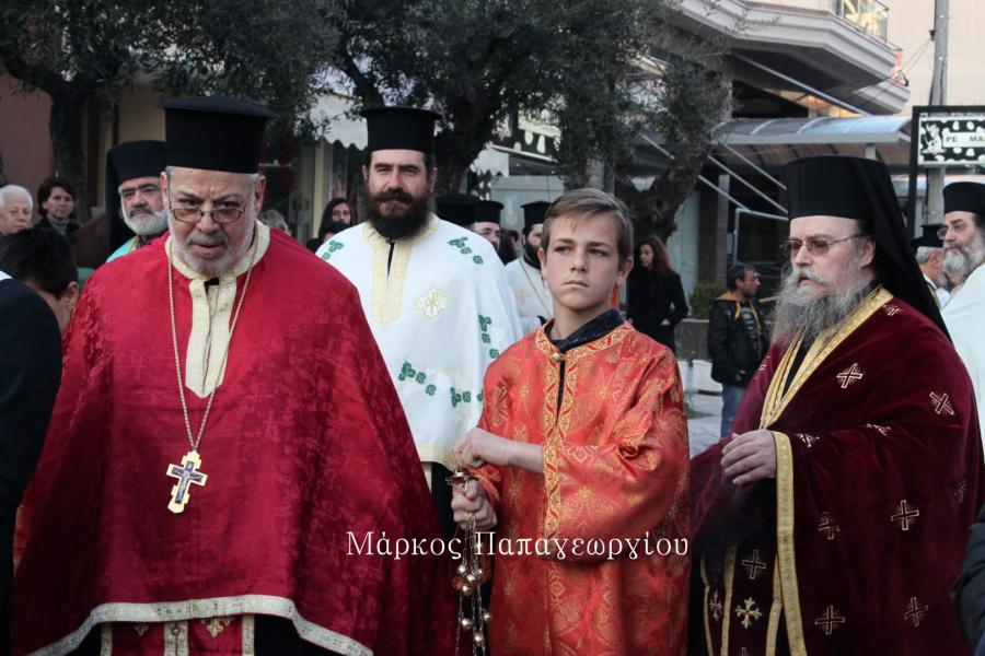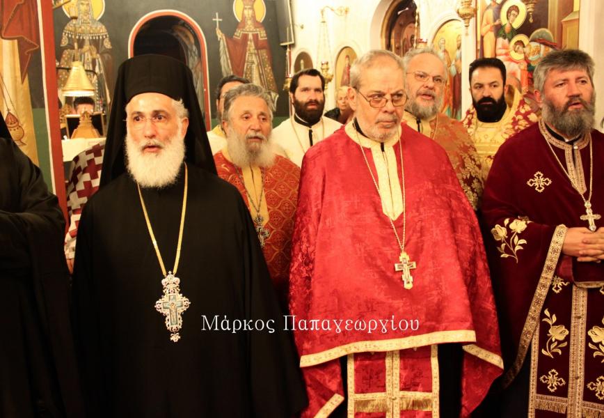 Η πομπή των ιερέων που συνόδευσαν το Τίμιο Ξύλο, κατευθύνθηκε πρός τον Ιερό Ναό, όπου στην συνέχεια τελέστηκε Μέγας Αρχιερατικός Εσπερινός, χοροστατούντος του Σεβ. Μητροπολίτου Ιλίου κ. Αθηναγόρα, συμπροσευχομένου του Σεβ. Μητροπολίτη Ηλιουπόλεως κ. Θεοδώρου από το Πατριαρχείο Αλεξανδρείας.