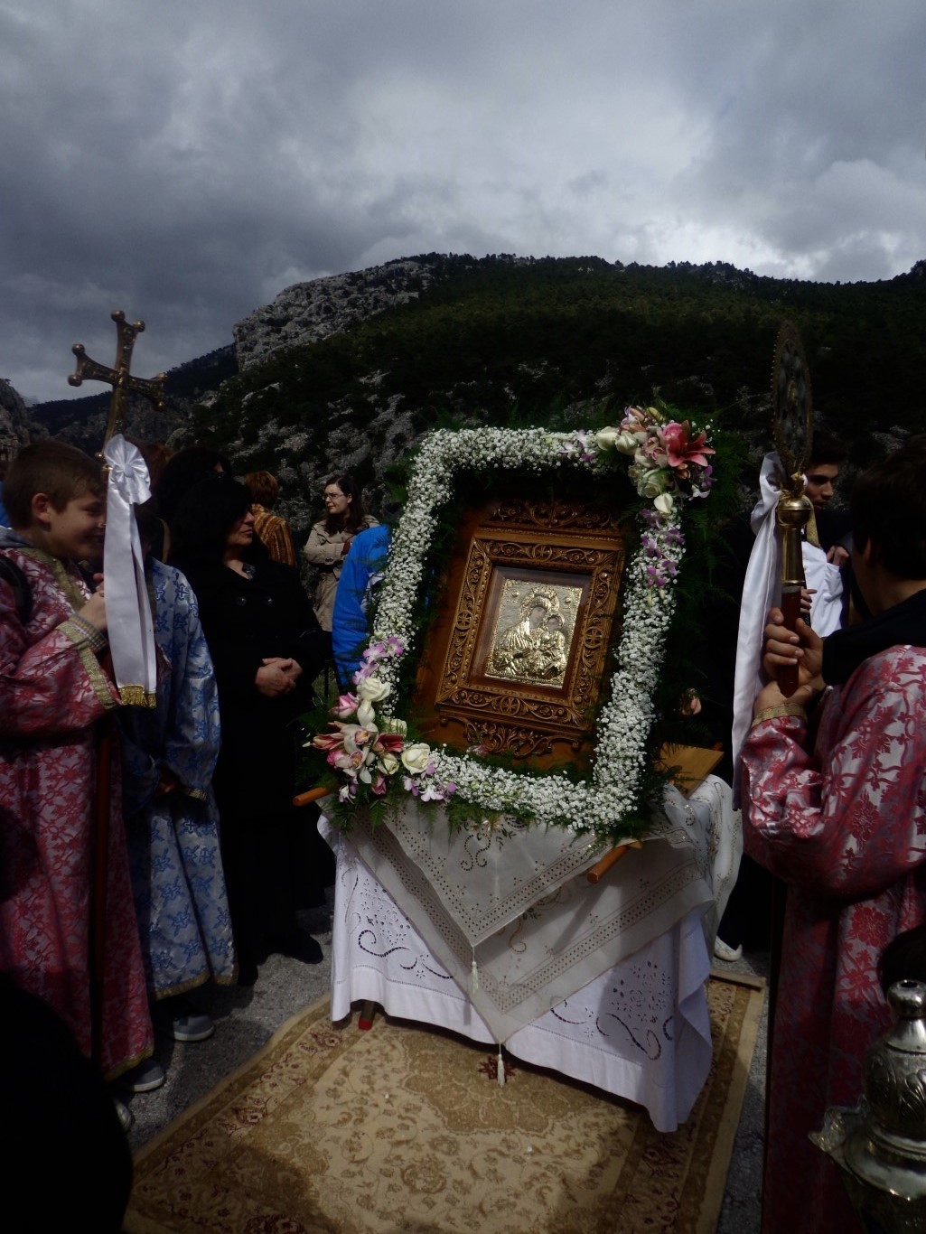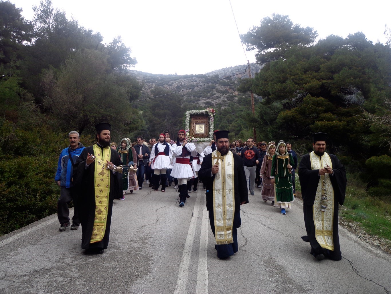 Στην λιτάνευση της εικόνας της Θεοτόκου συμμετείχαν ο εφημέριος του Ι.Ν. Παναγίας Γρηγορούσας Ζεφυρίου π. Άγγελος Κανέλλος και ο εφημέριος του Ι.Ν. Αγ. Βαρβάρας Ιλίου π. Γεώργιος Βασιλείου, ενώ κατά τη διάρκεια της λιτάνευσης συνόδευσε και έτερος εφημέριος του Ι.Ν. Αγ. Βαρβάρας Ιλίου, ο π. Δημήτριος Παναγακόπουλος. Ιερείς και πιστοί από όλους τους ναούς κατά μήκος της διαδρομής περίμεναν το πέρασμα της εικόνας στη Λ. Φυλής.