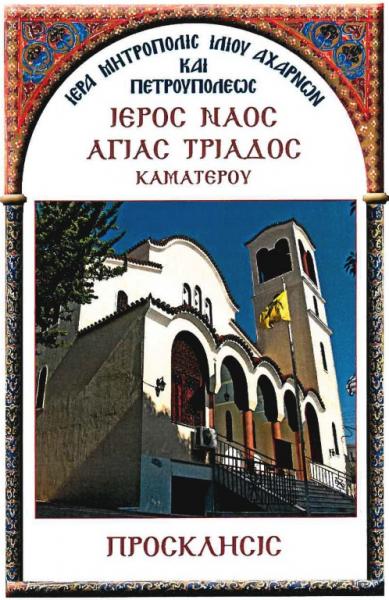 Το πρόγραμμα της πανηγύρεως του Ι.Ν. Αγ. Τριάδας Καματερού είναι το ακόλουθο: