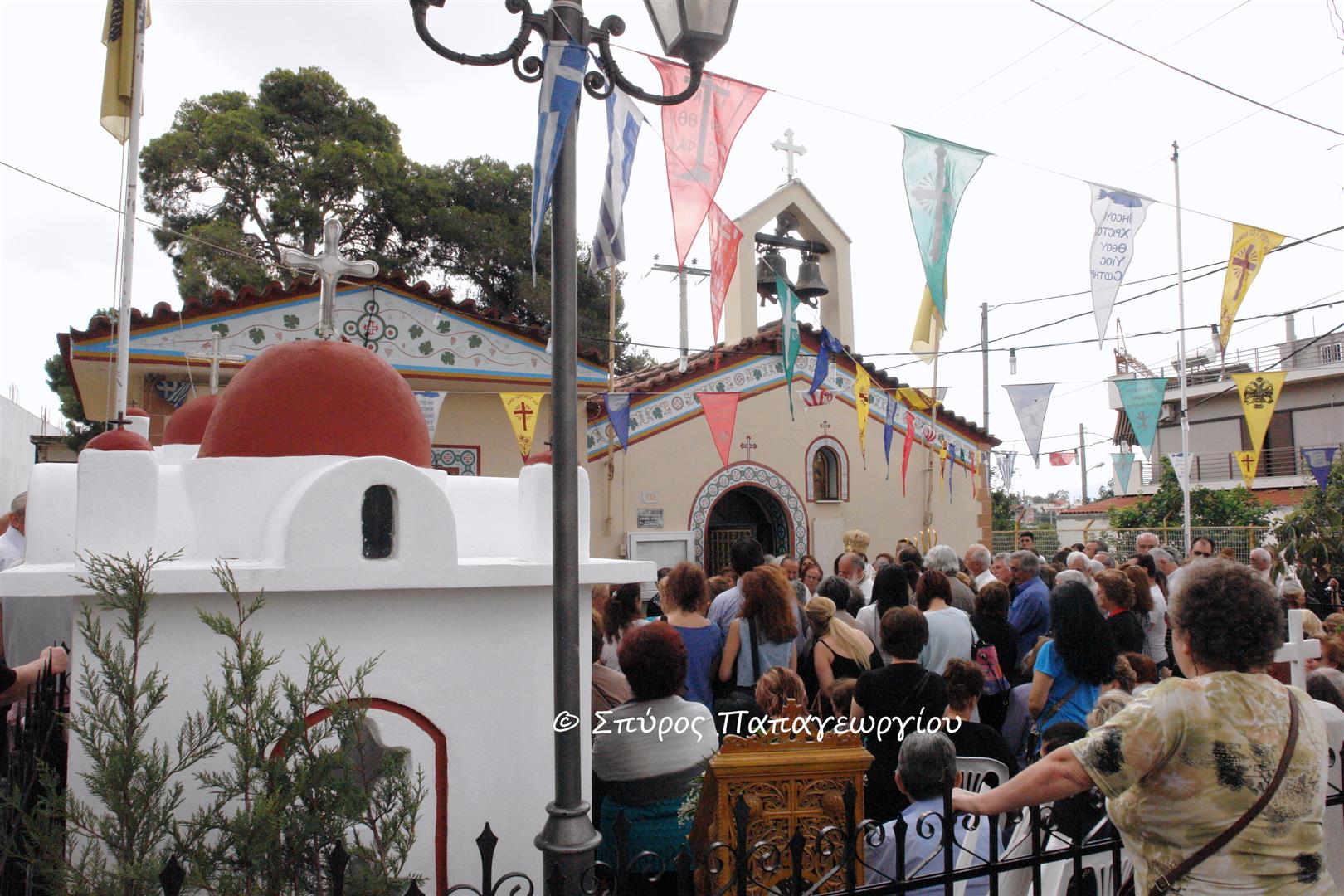 Πλήθος πιστών παρευρέθηκε στον εορτασμό του παρεκκλησίου του Αγίου Αποστόλου Ιούδα του Θαδδαίου, πού βρίσκεται μπροστά στον αύλιο χώρο του Ιερού Ναού Αγ. Δημητρίου στις Αχαρνές.