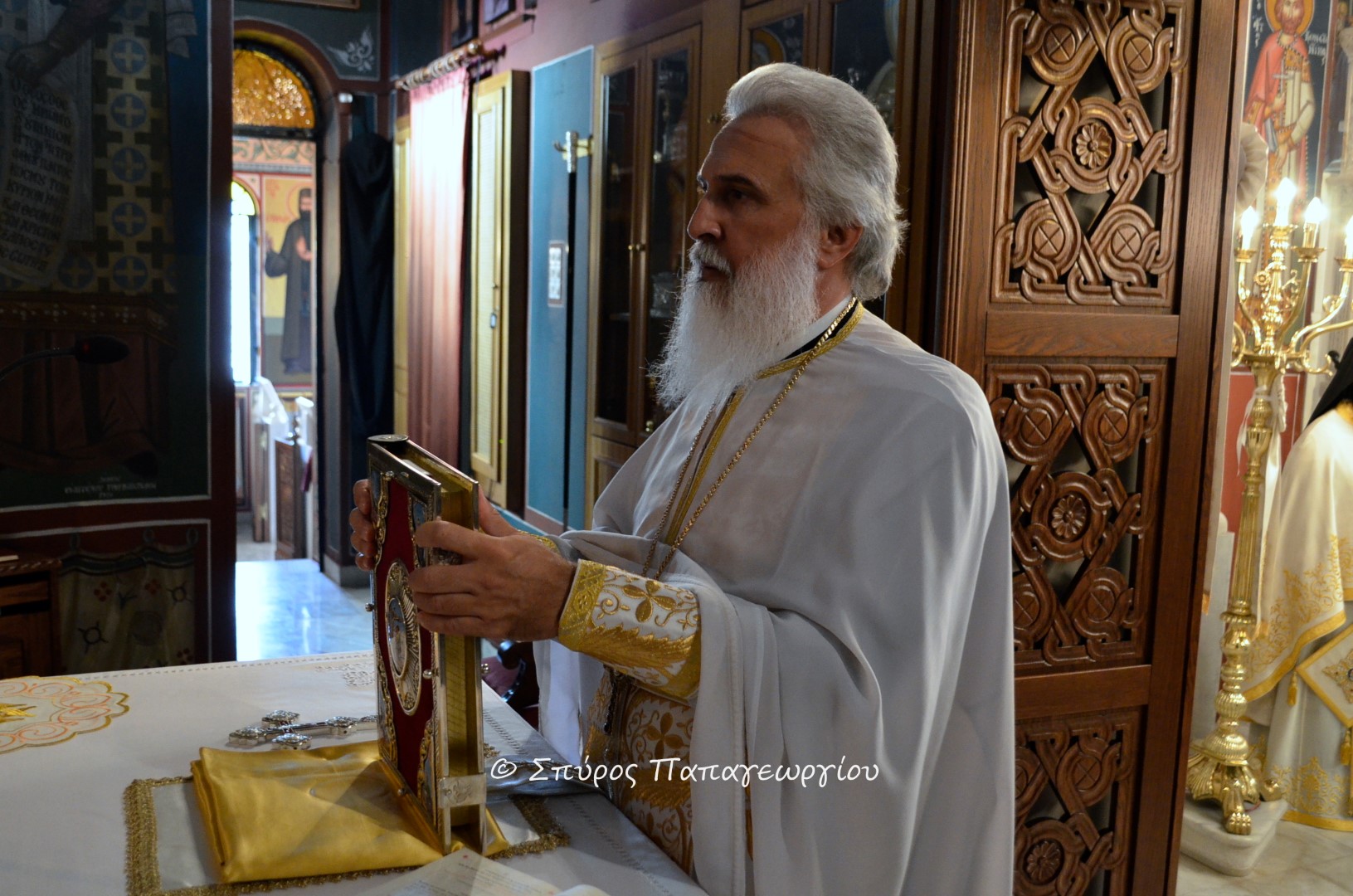 Ο προϊστάμενος του Ναού, Αρχιμανδρίτης Τιμόθεος Αναγνωστάκης εξέφρασε τις ολόθερμες ευχαριστίες προς τον Μακαριώτατο Αρχιεπίσκοπο κ. Ιερώνυμο καθώς και τον Δ/ντη του Ρ/Σ της Εκκλησίας της Ελλάδος κ. Αλέξανδρο Κατσιάρα, για την άδεια και ευλογία οι ακολουθίες τόσο του Εσπερινού όσο και η σημερινή της Θείας Λειτουργίας να μεταδοθούν σε πανελλαδικό δίκτυο.