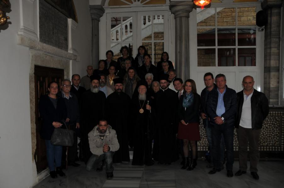 Ιδιαίτερη ευλογία και συγκίνηση επεκράτησε κατά την επίσκεψη στο Σεπτό Κέντρο της Ορθοδοξίας, στο Μαρτυρικό Φανάρι, στο Οικουμενικό μας Πατριαρχείο. Εκεί παρέστησαν στον Εσπερινό, όπου χοροστάτησε ο Παναγιώτατος Οικουμενικός μας Πατριάρχης κ.κ. Βαρθολομαίος. Μετά το πέρας του Εσπερινού, ο Πατριάρχης του Γένους μας καλωσόρισε τους προσκυνητές στο Φανάρι σχολιάζοντας στη συνέχεια το επίκαιρο πρόβλημα που κυριαρχεί στην Ευρώπη σχετικά με το μεγάλο αριθμό προσφύγων από τη Συρία που εισρέουν στην Ελλάδα. Τόνισε επ’ αυτού ότι εάν δεν παύσει ο πόλεμος στη Συρία, δεν θα παύσει και η προσφυγιά των πονεμένων αυτών ανθρώπων. Στο τέλος έδωσε τις πατρικές και πατριαρχικές του Ευλογίες.