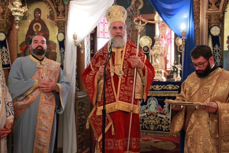 Στον Όρθρο και την Θεία Λειτουργία προεξήρχε ο οικείος Μητροπολίτης Ιλίου κ. Αθηναγόρας, πλαισιωμένος από πλήθος ιερέων της Μητροπόλεως. Στην ομιλία του ο κ. Αθηναγόρας επεσήμανε τη σπουδαιότητα της σημερινής εορτής καθώς «η Παναγία είναι η πύλη που βλέπει προς την ανατολή. Η πόρτα για να ανατείλει και πάλι στον κόσμο η χαρά, η αλήθεια και η σωτηρία».