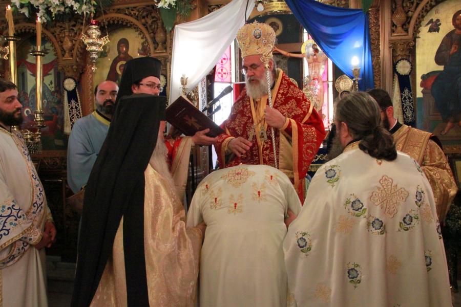 Κατά τη διάρκεια της Θείας Λειτουργίας ο Μητροπολίτης Ιλίου, χειροτόνησε σε διάκονο τον π. Ιωάννη Χριστοδουλάκη, παρουσία του πνευματικού του Πατρός του π. Ιωσήφ Έκερτ, ο οποίος έδωσε τη συμμαρτυρία για την χειροτονία. Ο κ. Αθηναγόρας συμπλήρωσε πως «Ο π. Ιωάννης, καλείται να εισέλθει στον Ναό του Θεού, όπως η Παναγία», ενώ συνέχισε λέγοντας πως: «καλείται να γίνει εικόνα απορρήτου, όπως έγινε και η Παναγία δοχείο για να κατοικήσει ο Θεός».