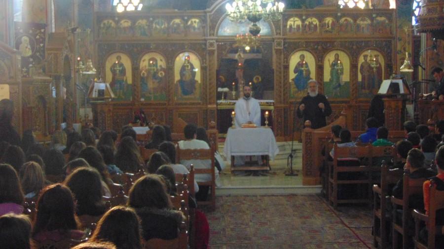 Μία από τις συχνές Θείες Λειτουργίες όπου ο Σεβασμιώτατος Μητροπολίτης Ιλίου, Αχαρνών και Πετρουπόλεως κ. Αθηναγόρας επεξηγεί τα τελούμενα σε μαθητές, τελέστηκε στον Ι.Ν. Αγ. Τριάδας Πετρουπόλεως.