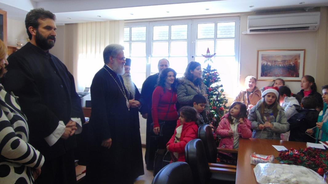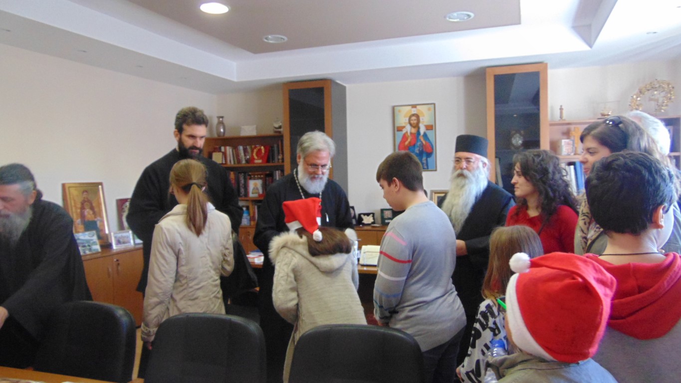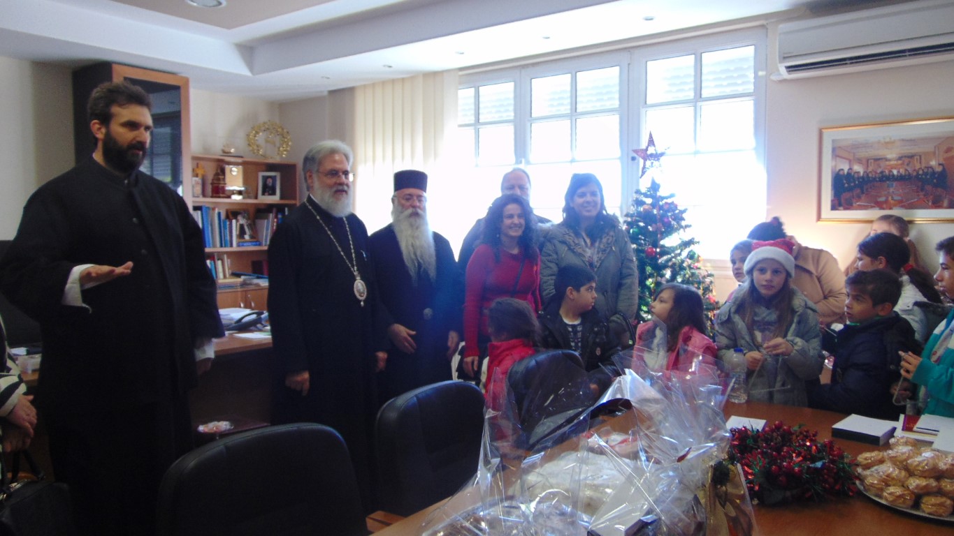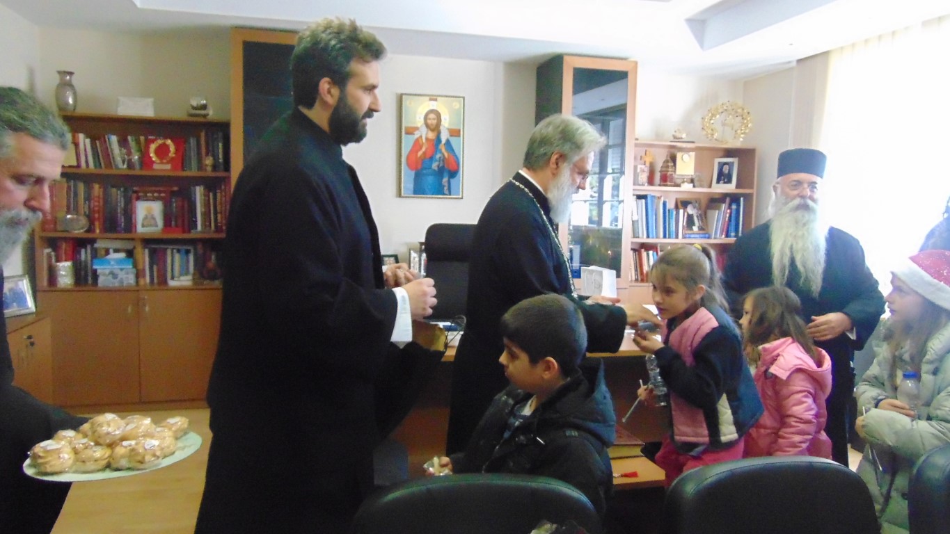 Τα παιδιά των κατηχητικών συνάξεων του Ι.Ν. Αγ. Τριάδας Πετρουπόλεως επισκέφθηκαν τον Σεβασμιώτατο Μητροπολίτη Ιλίου, Αχαρνών και Πετρουπόλεως κ. Αθηναγόρα, για να του ψάλουν τα χριστουγεννιάτικα κάλαντα.