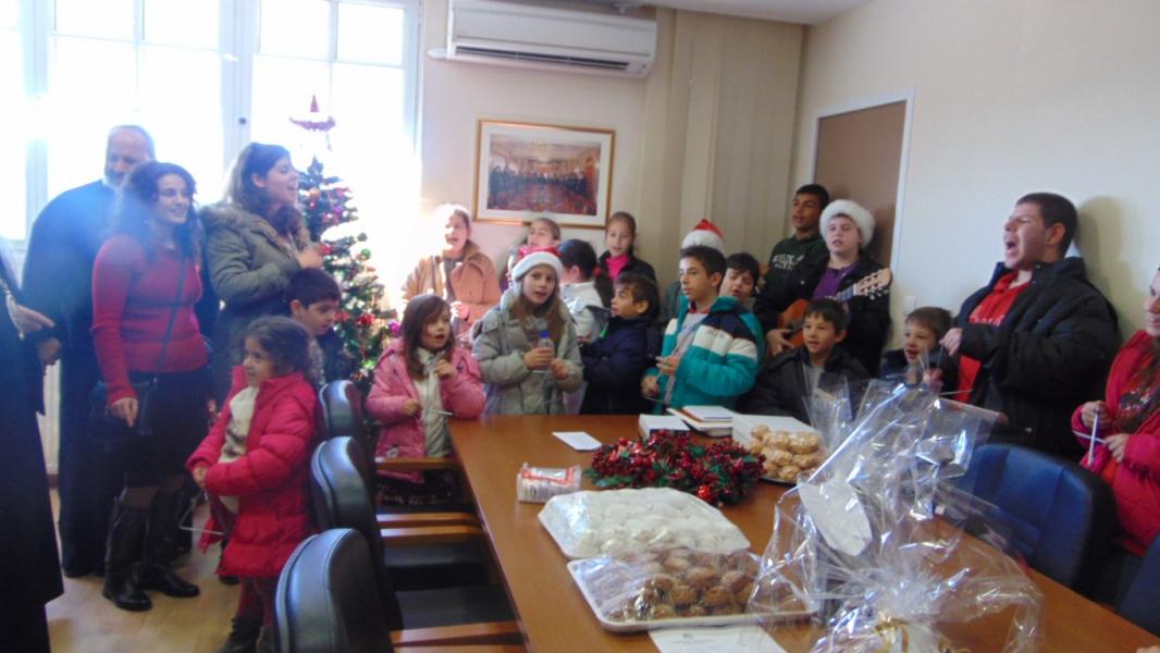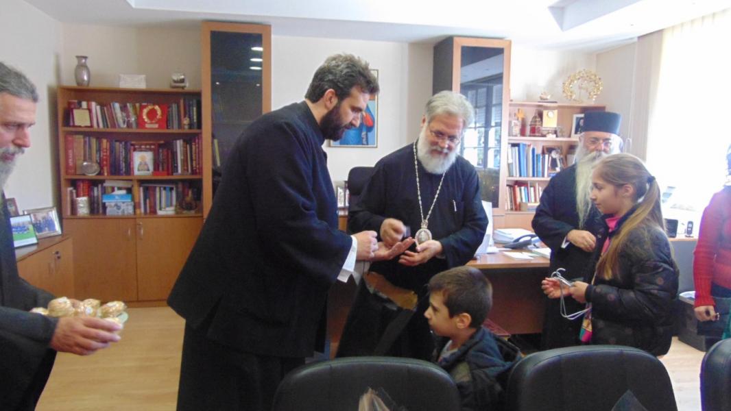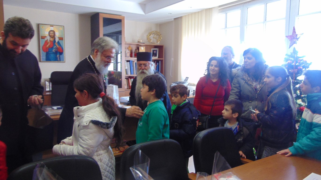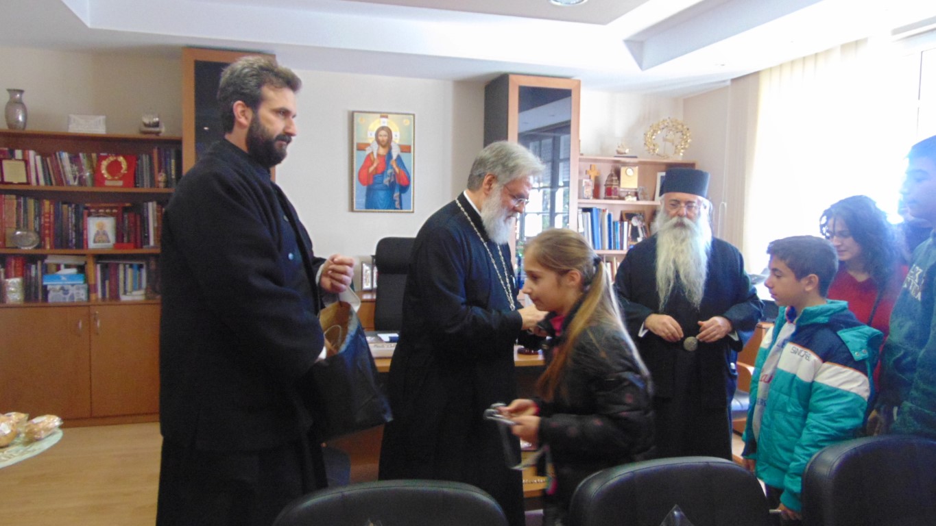 Τα παιδιά των κατηχητικών συνάξεων του Ι.Ν. Αγ. Τριάδας Πετρουπόλεως επισκέφθηκαν τον Σεβασμιώτατο Μητροπολίτη Ιλίου, Αχαρνών και Πετρουπόλεως κ. Αθηναγόρα, για να του ψάλουν τα χριστουγεννιάτικα κάλαντα.