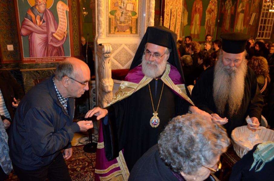 Ο Εσπερινός της Συγγνώμης, που αποτελεί μία από της κατανυκτικότερες ακολουθίες της περιόδου, κοσμήθηκε από την θεολογική ομιλία του Σεβασμιωτάτου, ο οποίος κατηύθυνε τη σκέψη όλων των ακροατών προς το λυκαυγές της Αναστάσεως αλλά και της Βασιλείας των Ουρανών.