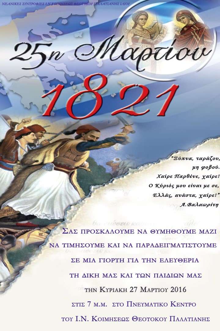 Την καθιερωμένη γιορτή για την επέτειο της εθνικής παλιγγενεσίας πραγματοποιούν τα παιδιά των κατηχητικών συνάξεων της ενορίας της Παλατιανής Ιλίου.