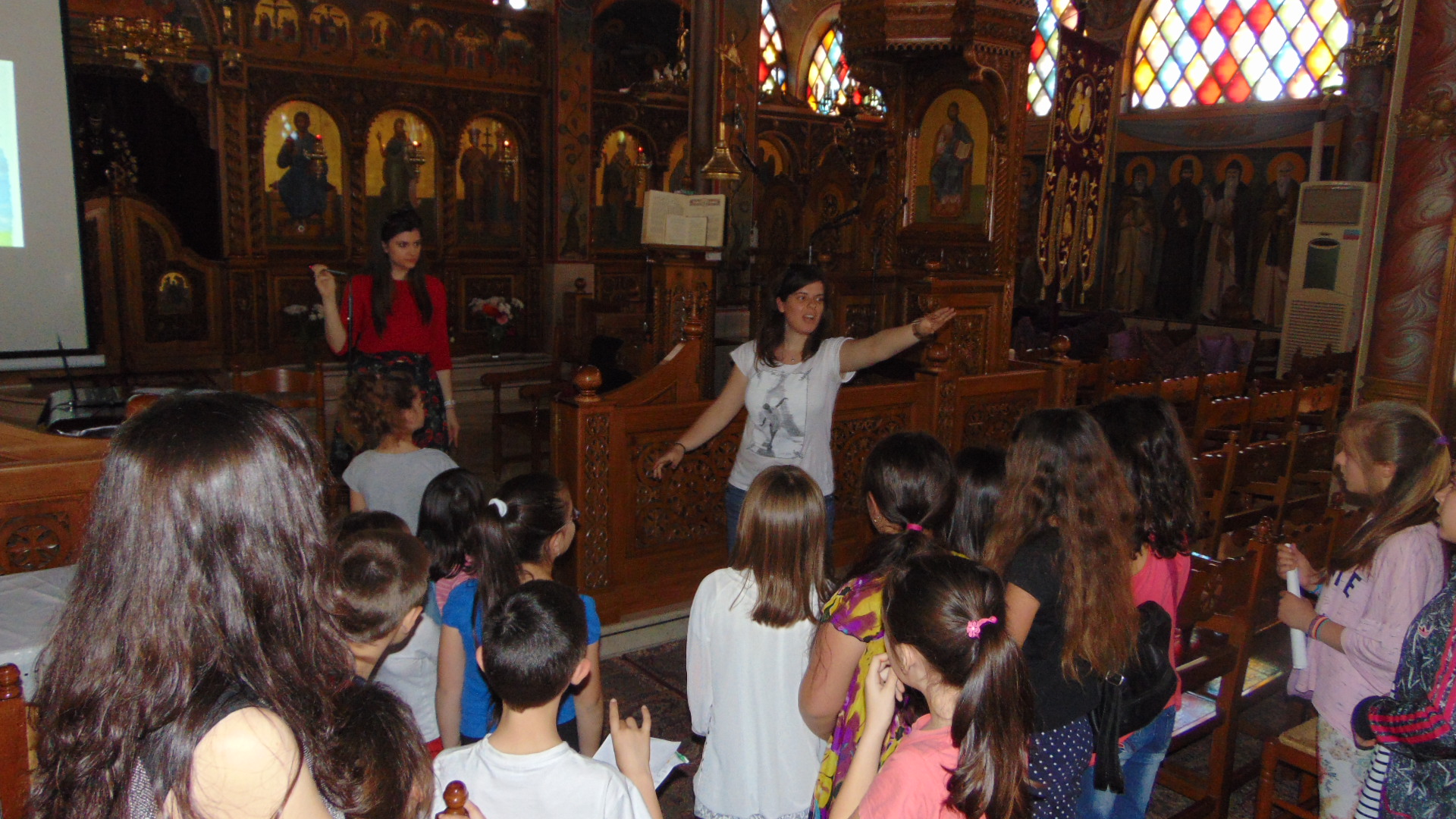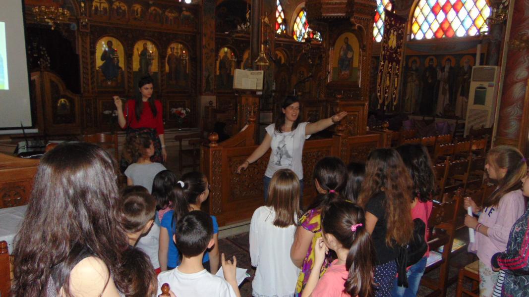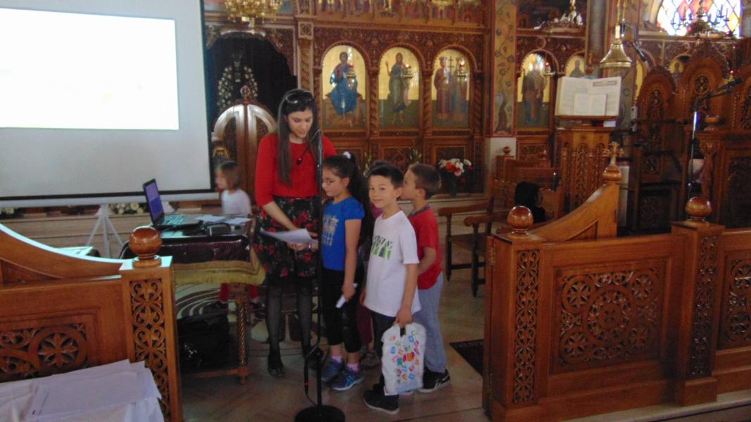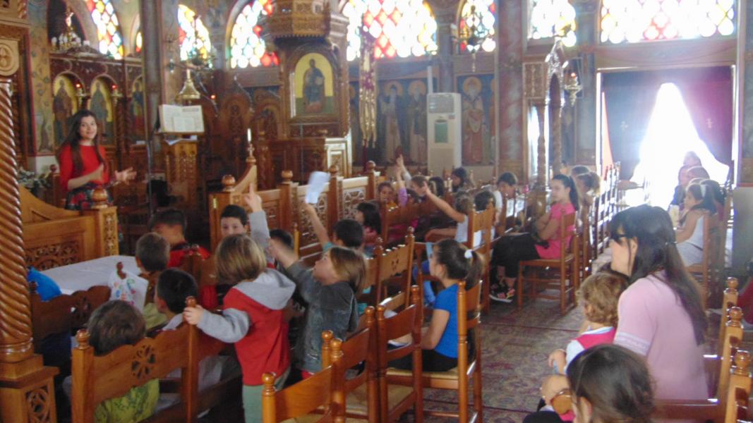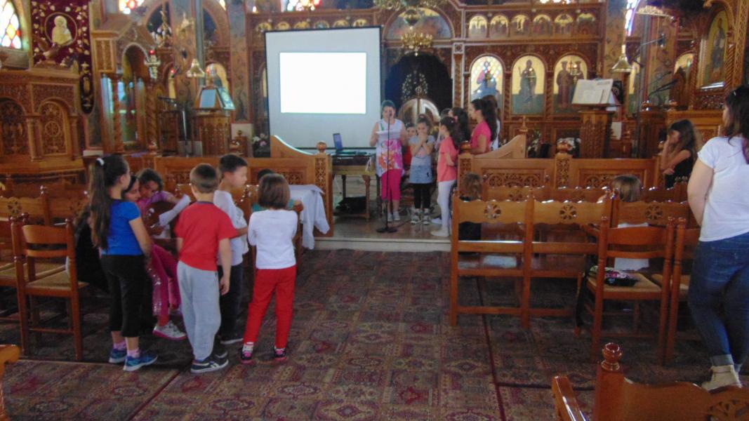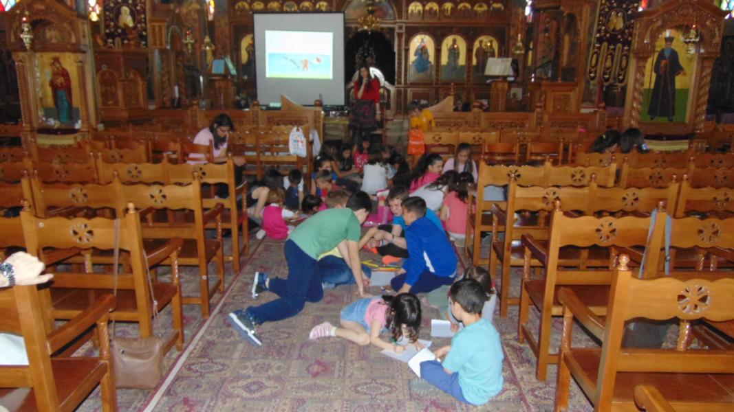 Τα μικρότερα παιδιά των κατηχητικών συνάξεων του Ι.Ν. Αγ. Τριάδας Πετρουπόλεως υποδέχθηκαν την συγγραφέα παιδικών βιβλίων Ιωάννα Σκαρλάτου, στις 17 Απριλίου 2016.