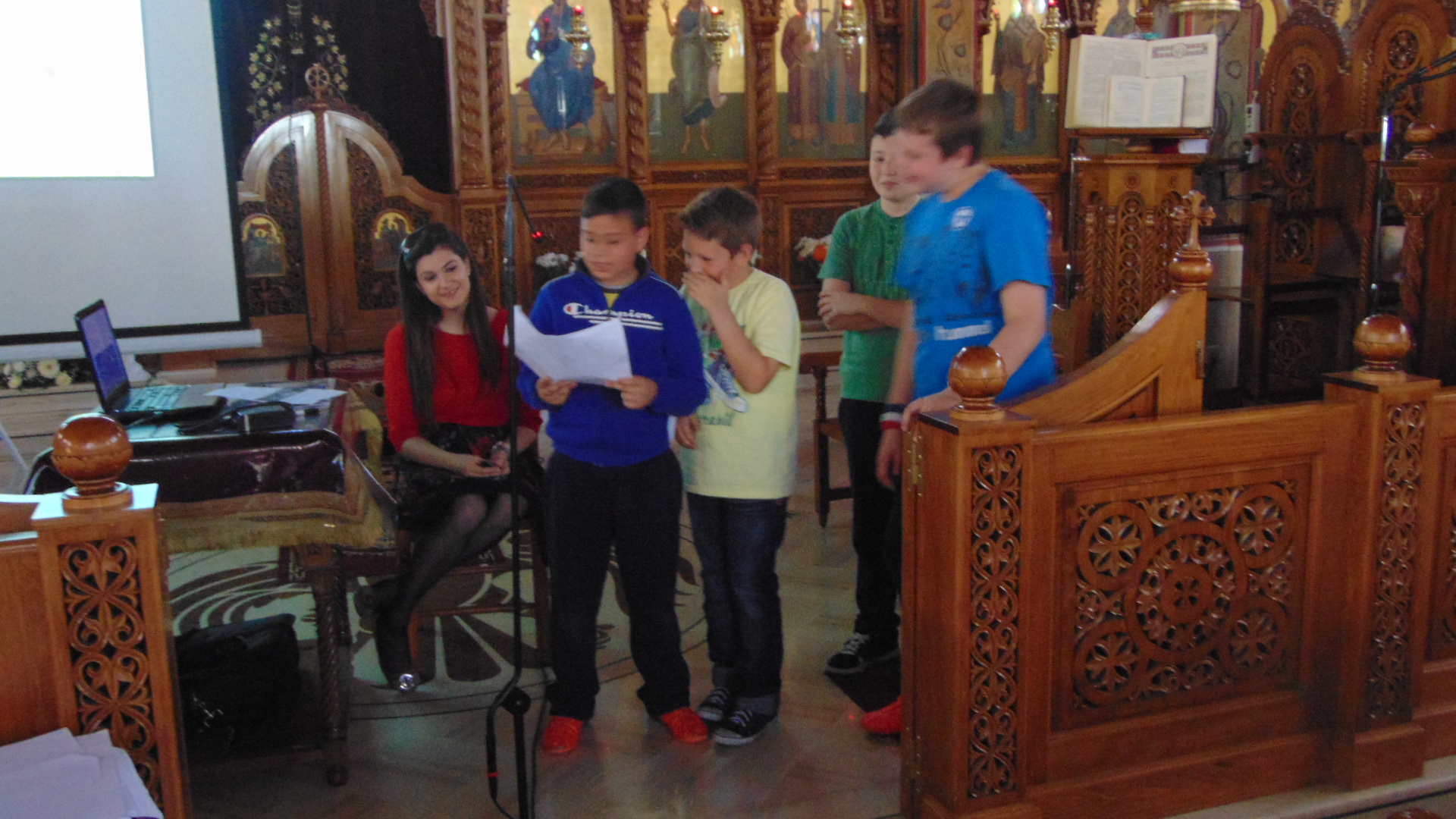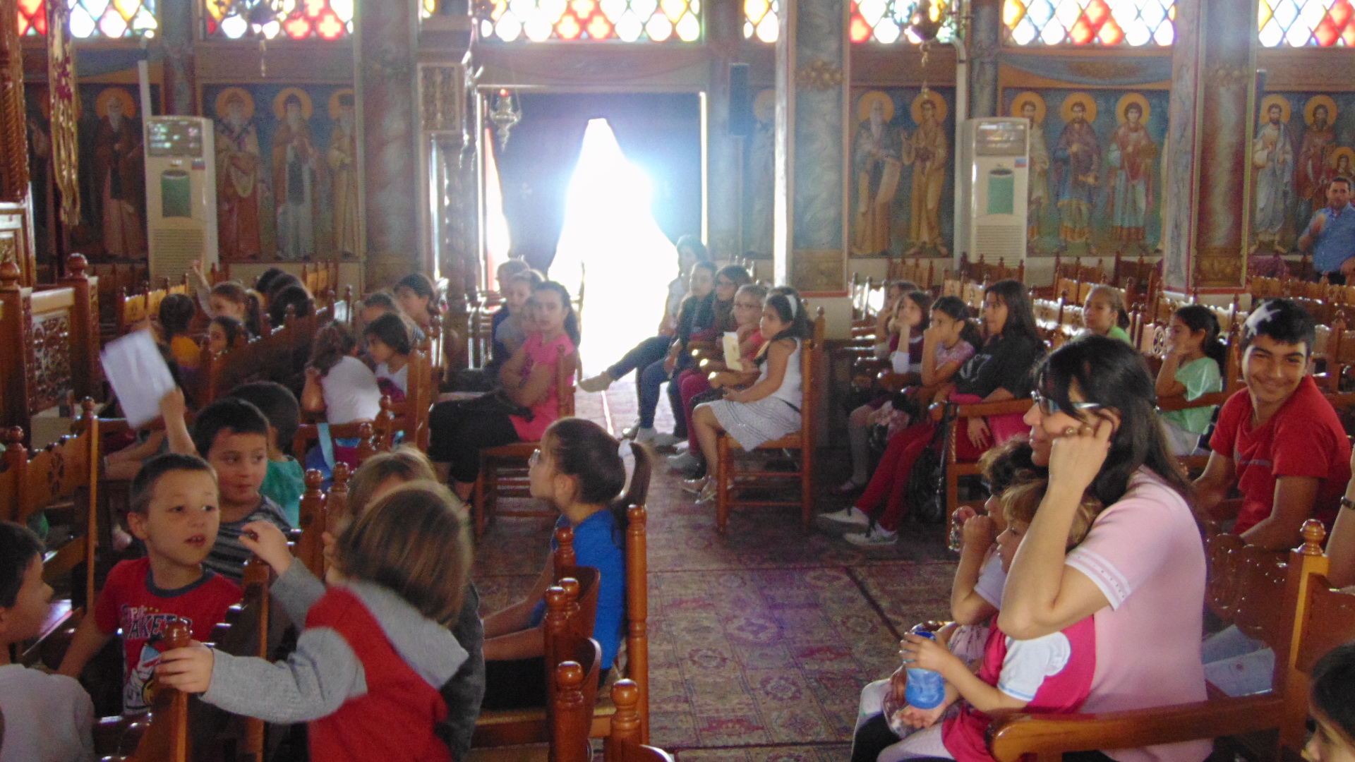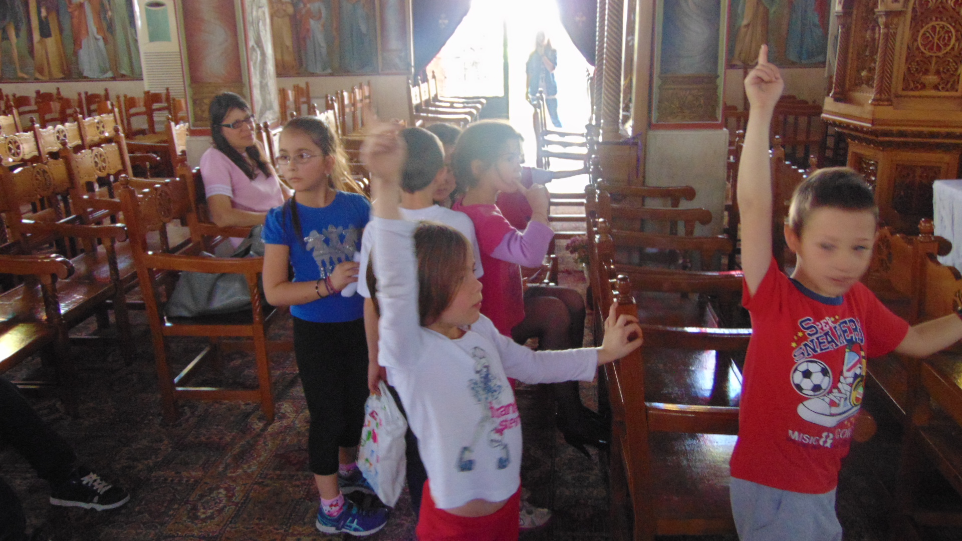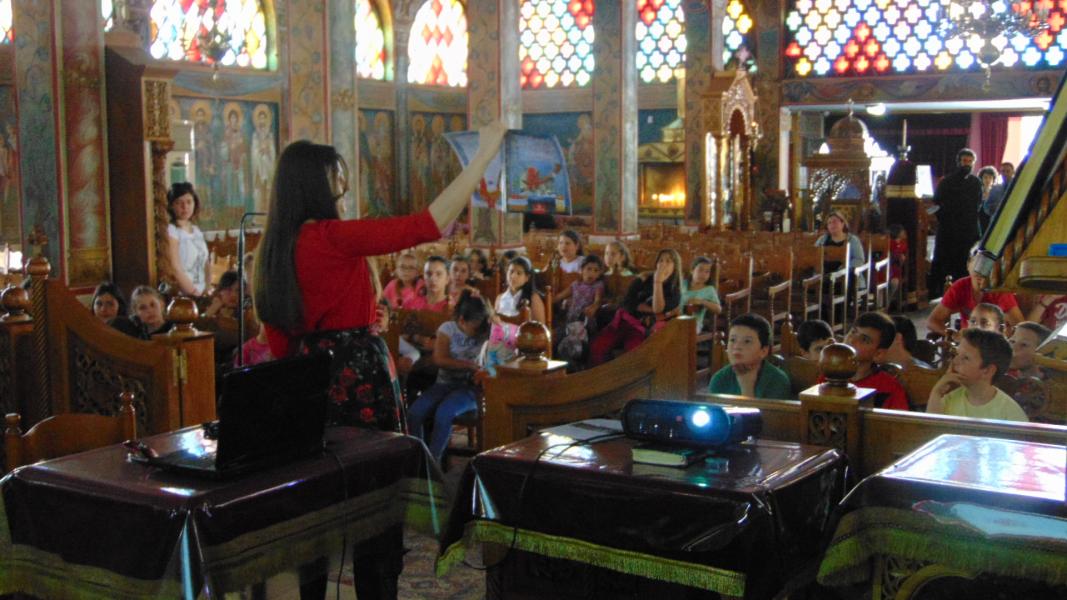 Τα μικρότερα παιδιά των κατηχητικών συνάξεων του Ι.Ν. Αγ. Τριάδας Πετρουπόλεως υποδέχθηκαν την συγγραφέα παιδικών βιβλίων Ιωάννα Σκαρλάτου, στις 17 Απριλίου 2016.