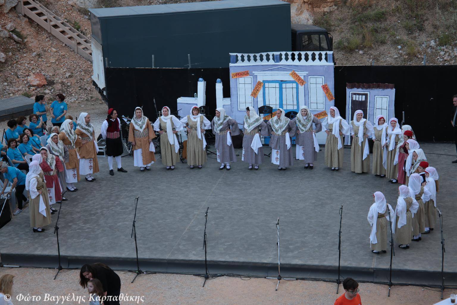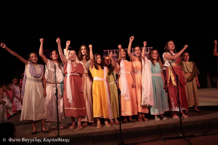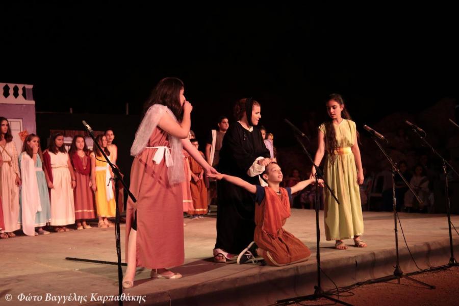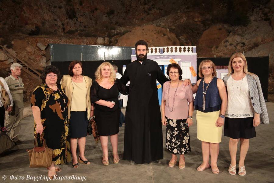 - Στο τρίτο μέρος του προγράμματος παρουσιάστηκε απο την θεατρική ομάδα των νέων της Αγίας Τριάδας και υπό την καλλιτεχνική διεύθυνση του ηθοποιού παιδικής σκηνής κ. Κων/νου Τζαφέρη η θεατρική παράσταση του Αριστοφάνη «Εκκλησιάζουσες», παράσταση η οποία περιελάμβανε υποκριτικούς ρόλους από την αρχαία Ελλάδα.