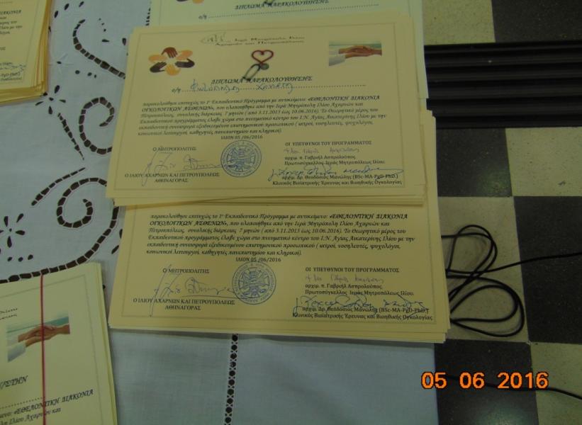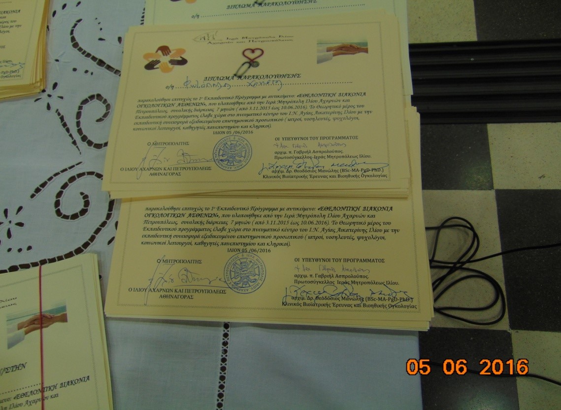Έκλεισε με επιτυχία ο πρώτος κύκλος του Εκπαιδευτικού προγράμματος με τίτλο «ΕΘΕΛΟΝΤΙΚΗ ΔΙΑΚΟΝΙΑ ΟΓΚΟΛΟΓΙΚΩΝ ΑΣΘΕΝΩΝ» που πραγματοποιήθηκε υπό την αιγίδα της Ι. Μητροπόλεως Ιλίου.