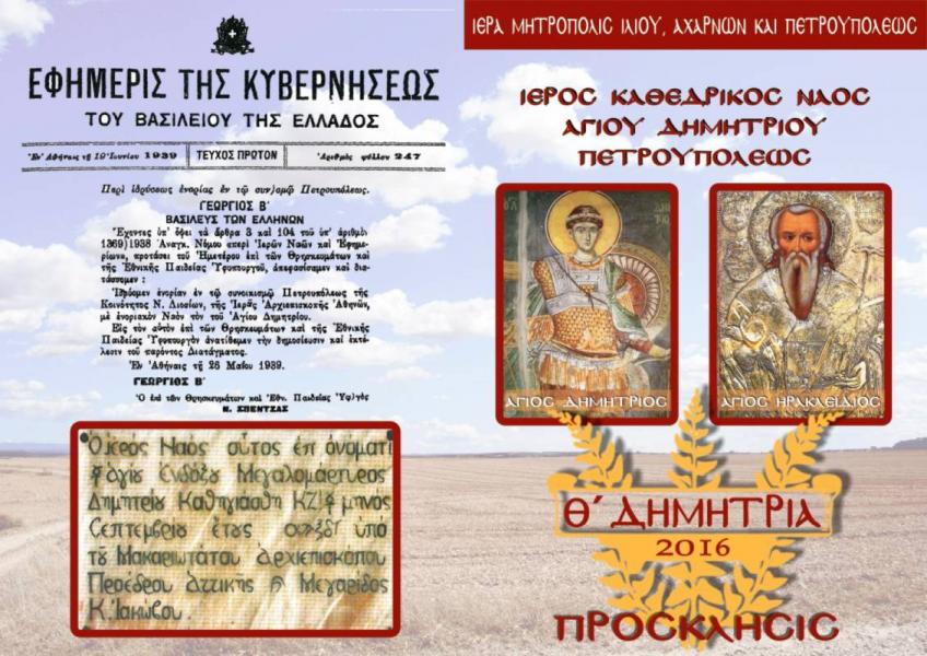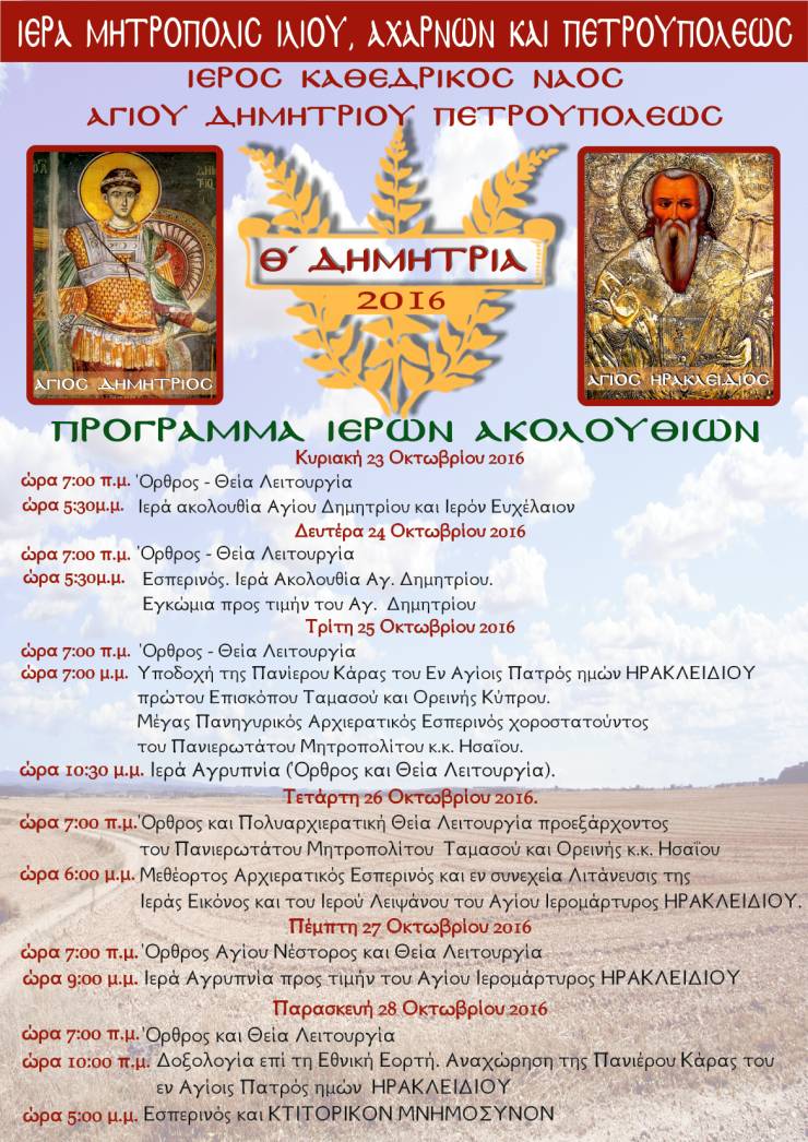 Πρόγραμμα πανηγύρεως Ι.Ν. Αγ. Δημητρίου Πετρουπόλεως