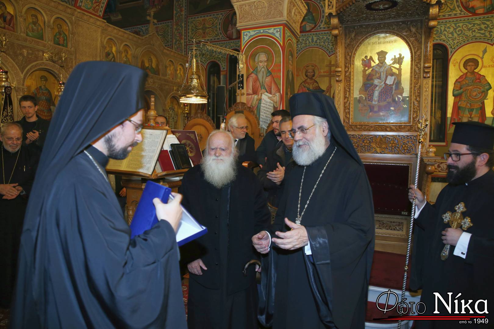 Στο Μέγα Πανηγυρικό Εσπερινό χοροστάτησε ο Σεβασμιώτατος Μητροπολίτης Ιλίου, Αχαρνών και Πετρουπόλεως κ. Αθηναγόρας, πλαισιούμενος από πλήθος Ιερέων. Κατά το πέρας της Πανηγυρικής Ακολουθίας του Εσπερινού το Εκκλησιαστικό Συμβούλιο του Ιερού Ναού τίμησε τον πρώτο Εφημέριο της Ενορίας Αγίου Διονυσίου Ιλίου π. Γεώργιο Αντωνακόπουλο που για 34 χρόνια διακόνησε θεοσεβώς την Ενορία.