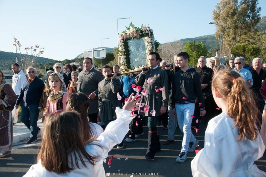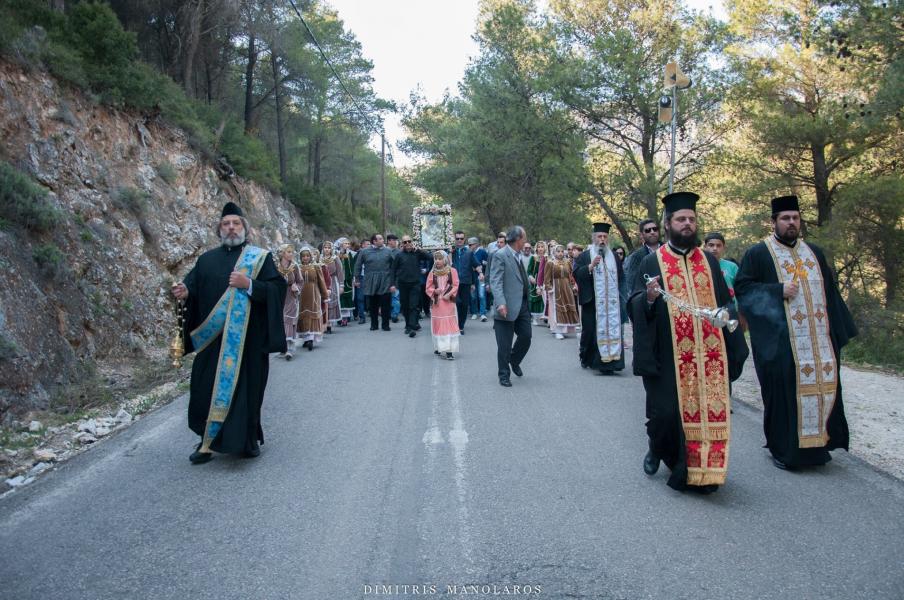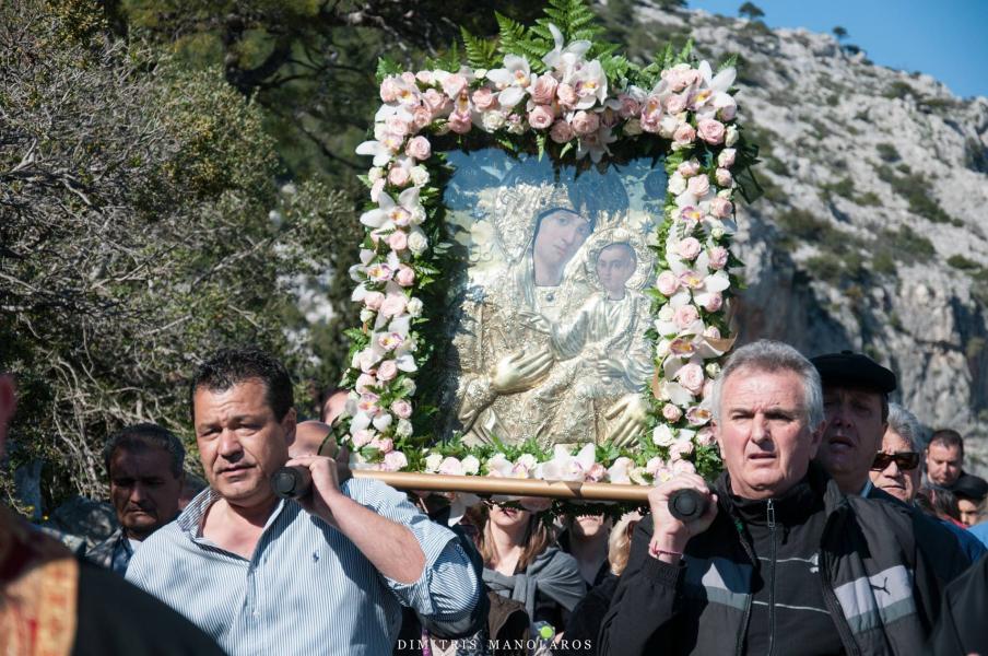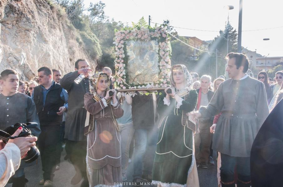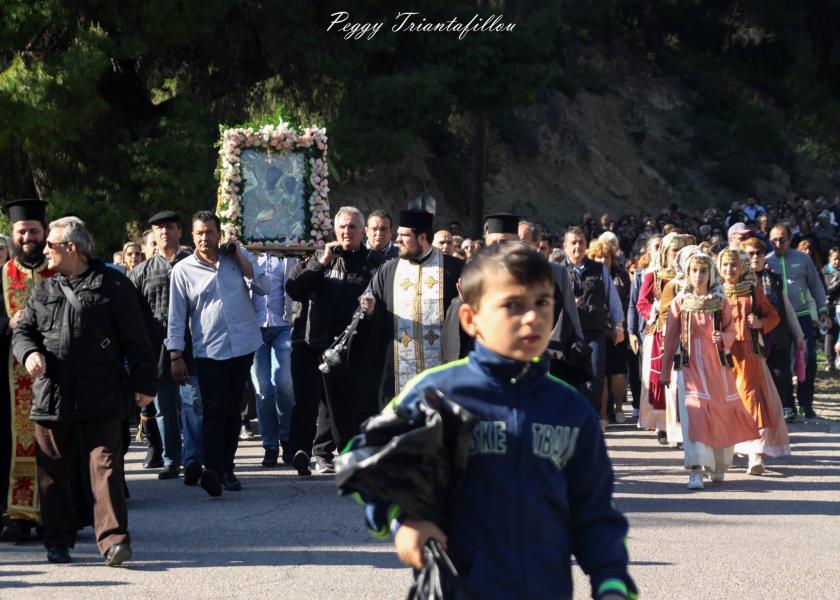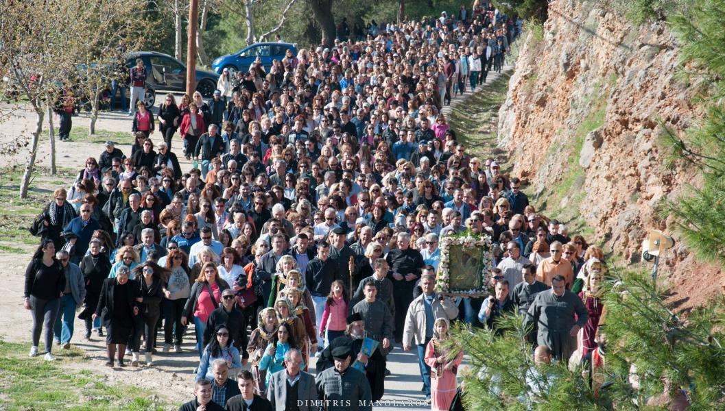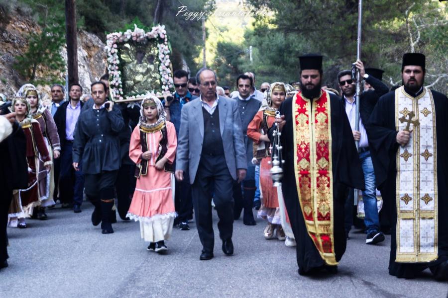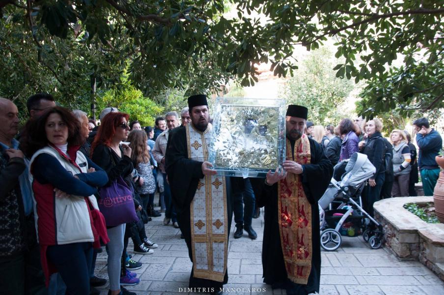 Πλήθος λαού παρέλαβε την Ιερά Εικόνα, με προεξάρχοντα τον Σεβασμιώτατο Μητροπολίτη Ιλίου κ. Αθηναγόρα, ο οποίος βρέθηκε νωρίς το απόγευμα στο χώρο της Ιεράς Μονής για τη διαδικασία της αναχώρησης της Ιεράς Εικόνας. Την Εικόνα λιτάνευσε πλήθος λαού μαζί με τους ιερείς του, σε μία πορεία άνω των δύο ωρών, από την Ι.Μ. Κλειστών στον Ι.Ν. Αγίων Κωνσταντίνου και Ελένης Άνω Λιοσίων.