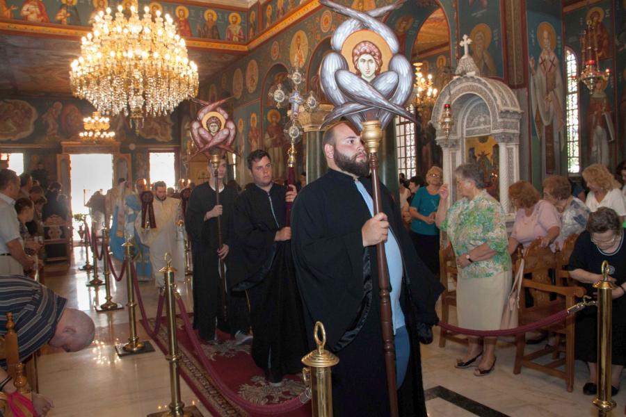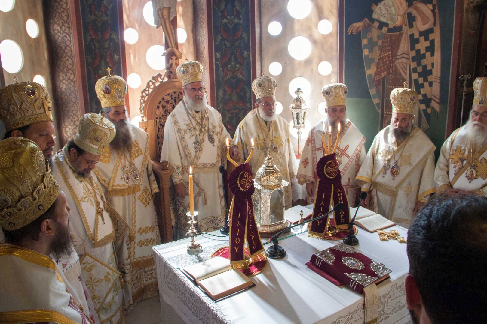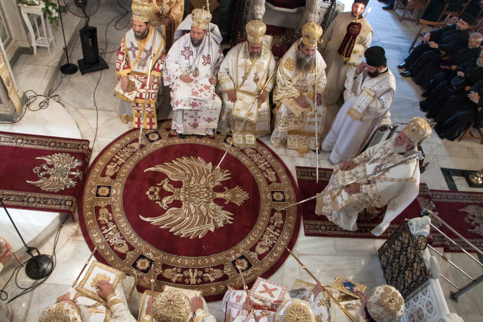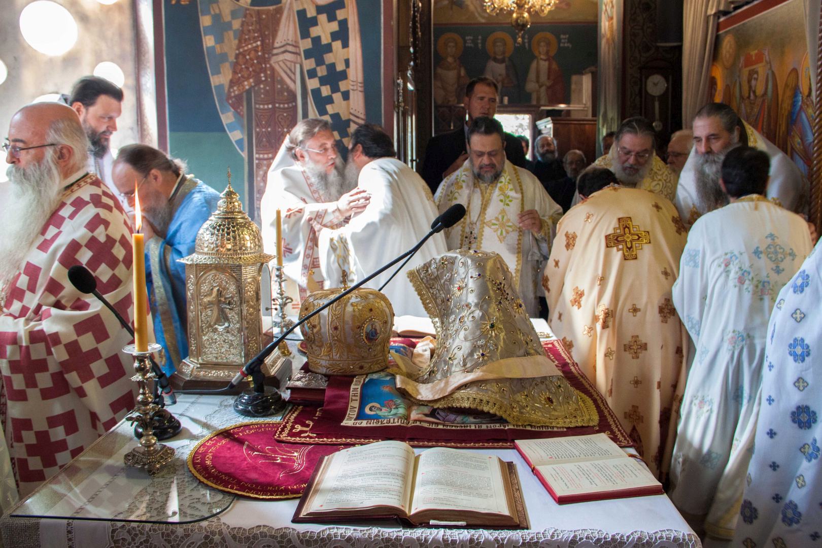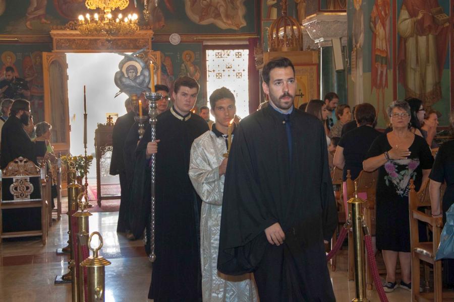 Στον Όρθρο χοροστάτησε ο Μητροπολίτης Μεσσηνίας κ. Χρυσόστομος ενώ στη Θεία Λειτουργία προεξήρχε ο Μητροπολίτης Ιλίου, Αχαρνών και Πετρουπόλεως κ. Αθηναγόρας, συλλειτουργούντων των Μητροπολιτών Πειραιώς κ. Σεραφείμ, Ηλιουπόλεως Αιγύπτου κ. Θεοδώρου, Μεσσηνίας κ. Χρυσοστόμου, Κηφισίας κ. Κυρίλλου, Ν. Ιωνίας κ. Γαβριήλ, Θεσσαλιώτιδος κ. Τιμοθέου, και των Επισκόπων Σαλώνων κ. Αντώνιου και Μεθώνης κ. Κλήμεντος. Συμπροσευχόμενοι παρέστησαν οι Μητροπολίτες Δημητριάδος κ. Ιγνάτιος και Πτολεμαϊδος κ. Εμμανουήλ, ενώ προσήλθε να ευχηθεί και ο Μητροπολίτης Αρκαλοχωρίου κ. Ανδρέας.