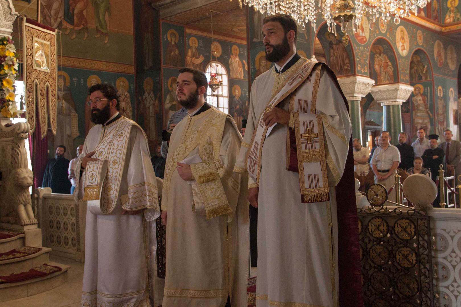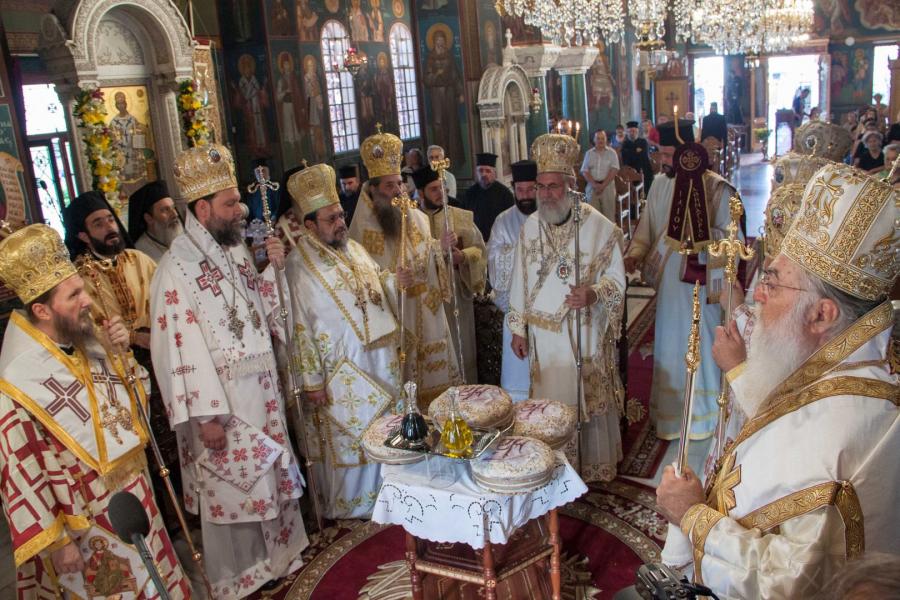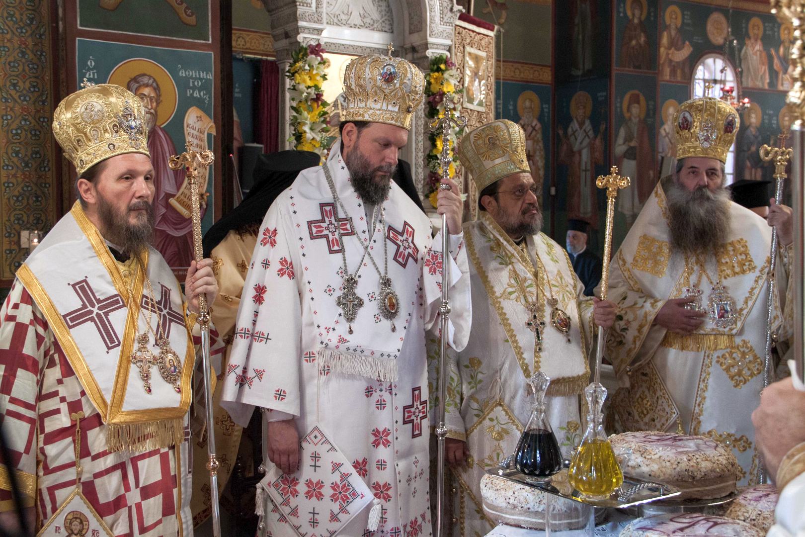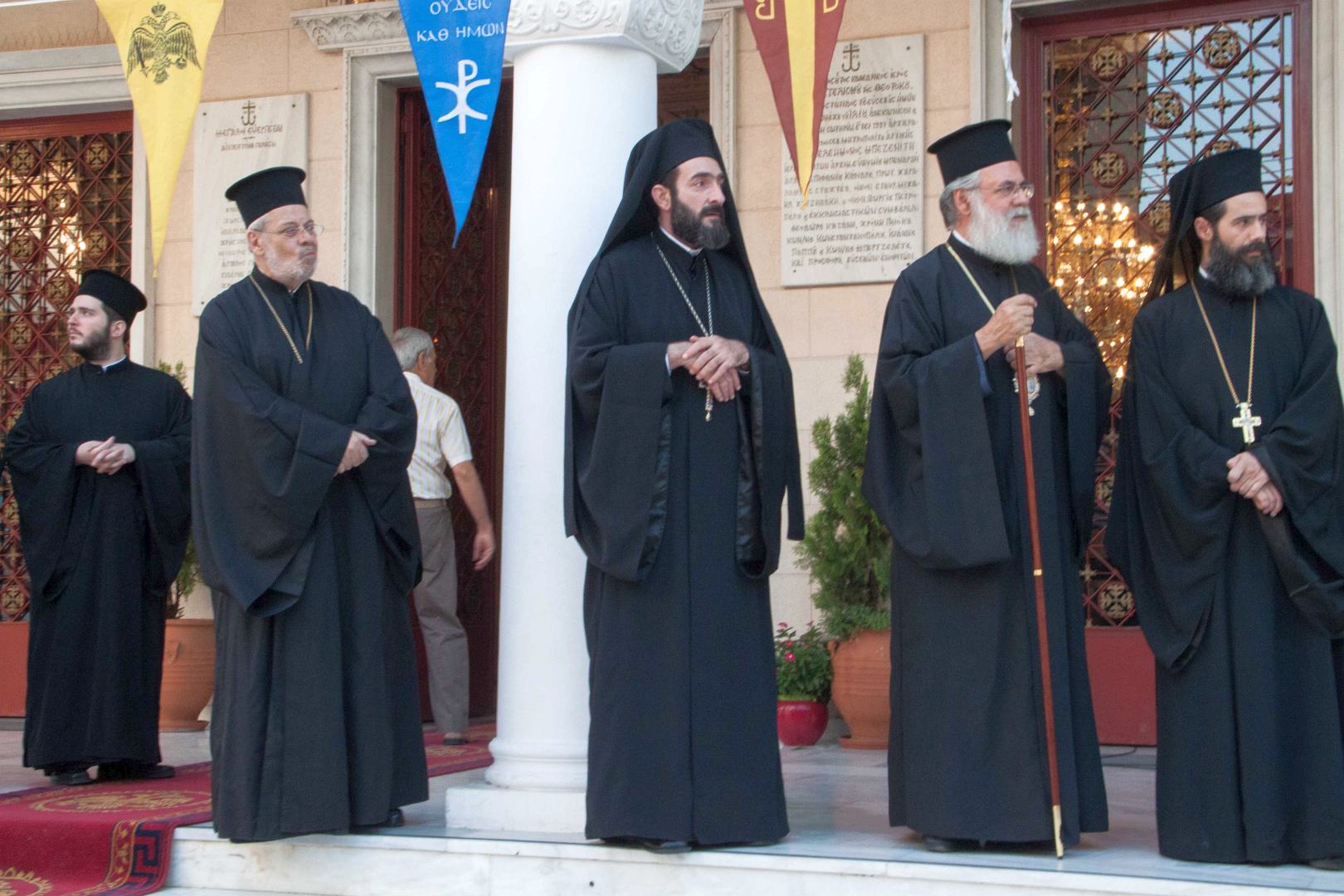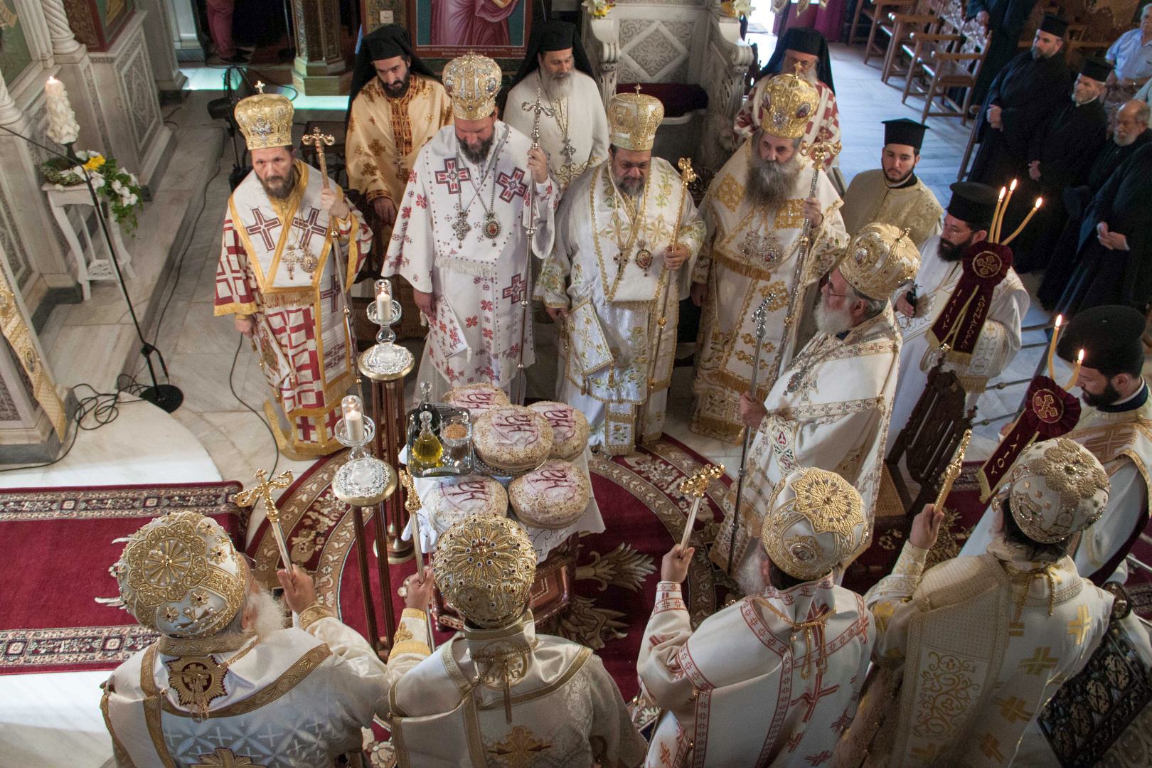 Στον Όρθρο χοροστάτησε ο Μητροπολίτης Μεσσηνίας κ. Χρυσόστομος ενώ στη Θεία Λειτουργία προεξήρχε ο Μητροπολίτης Ιλίου, Αχαρνών και Πετρουπόλεως κ. Αθηναγόρας, συλλειτουργούντων των Μητροπολιτών Πειραιώς κ. Σεραφείμ, Ηλιουπόλεως Αιγύπτου κ. Θεοδώρου, Μεσσηνίας κ. Χρυσοστόμου, Κηφισίας κ. Κυρίλλου, Ν. Ιωνίας κ. Γαβριήλ, Θεσσαλιώτιδος κ. Τιμοθέου, και των Επισκόπων Σαλώνων κ. Αντώνιου και Μεθώνης κ. Κλήμεντος. Συμπροσευχόμενοι παρέστησαν οι Μητροπολίτες Δημητριάδος κ. Ιγνάτιος και Πτολεμαϊδος κ. Εμμανουήλ, ενώ προσήλθε να ευχηθεί και ο Μητροπολίτης Αρκαλοχωρίου κ. Ανδρέας.