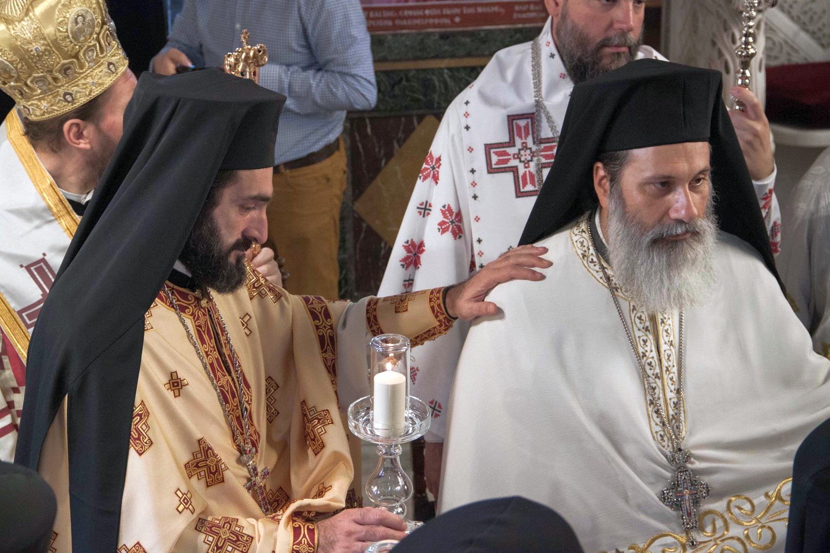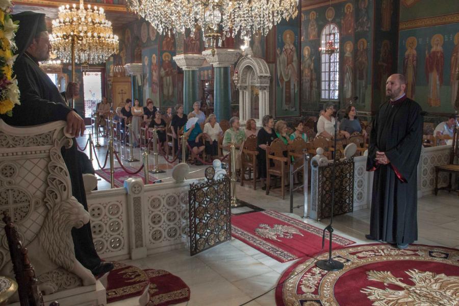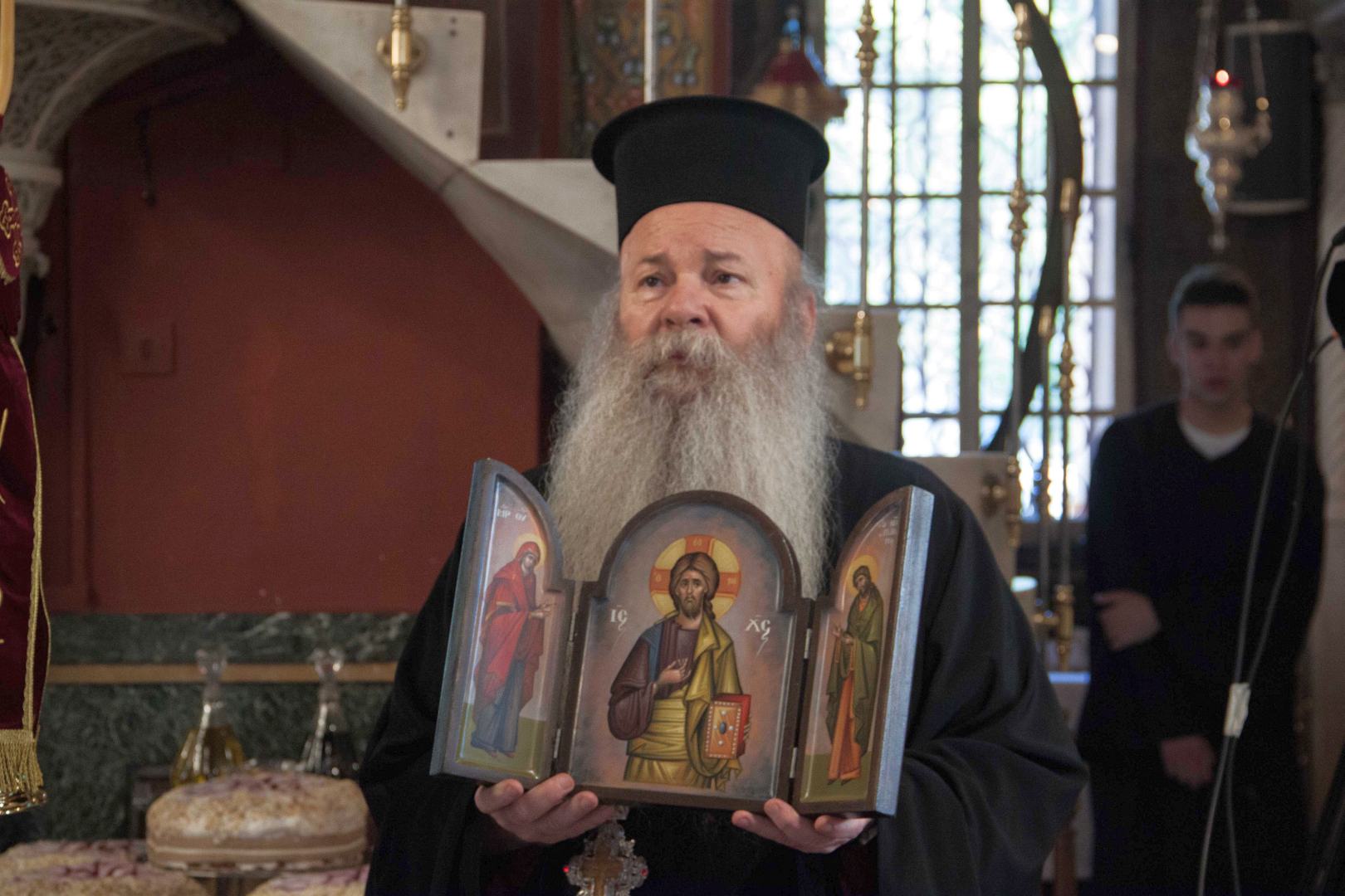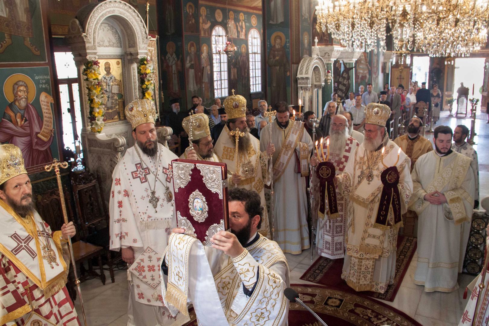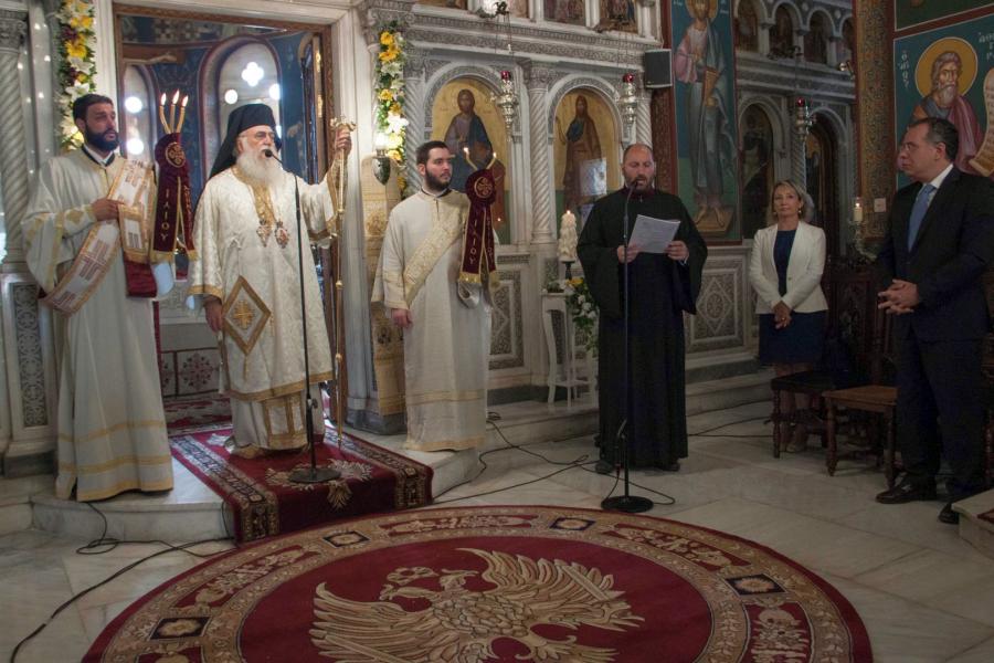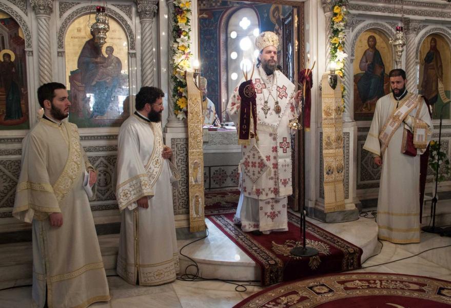 Στον Όρθρο χοροστάτησε ο Μητροπολίτης Μεσσηνίας κ. Χρυσόστομος ενώ στη Θεία Λειτουργία προεξήρχε ο Μητροπολίτης Ιλίου, Αχαρνών και Πετρουπόλεως κ. Αθηναγόρας, συλλειτουργούντων των Μητροπολιτών Πειραιώς κ. Σεραφείμ, Ηλιουπόλεως Αιγύπτου κ. Θεοδώρου, Μεσσηνίας κ. Χρυσοστόμου, Κηφισίας κ. Κυρίλλου, Ν. Ιωνίας κ. Γαβριήλ, Θεσσαλιώτιδος κ. Τιμοθέου, και των Επισκόπων Σαλώνων κ. Αντώνιου και Μεθώνης κ. Κλήμεντος. Συμπροσευχόμενοι παρέστησαν οι Μητροπολίτες Δημητριάδος κ. Ιγνάτιος και Πτολεμαϊδος κ. Εμμανουήλ, ενώ προσήλθε να ευχηθεί και ο Μητροπολίτης Αρκαλοχωρίου κ. Ανδρέας.