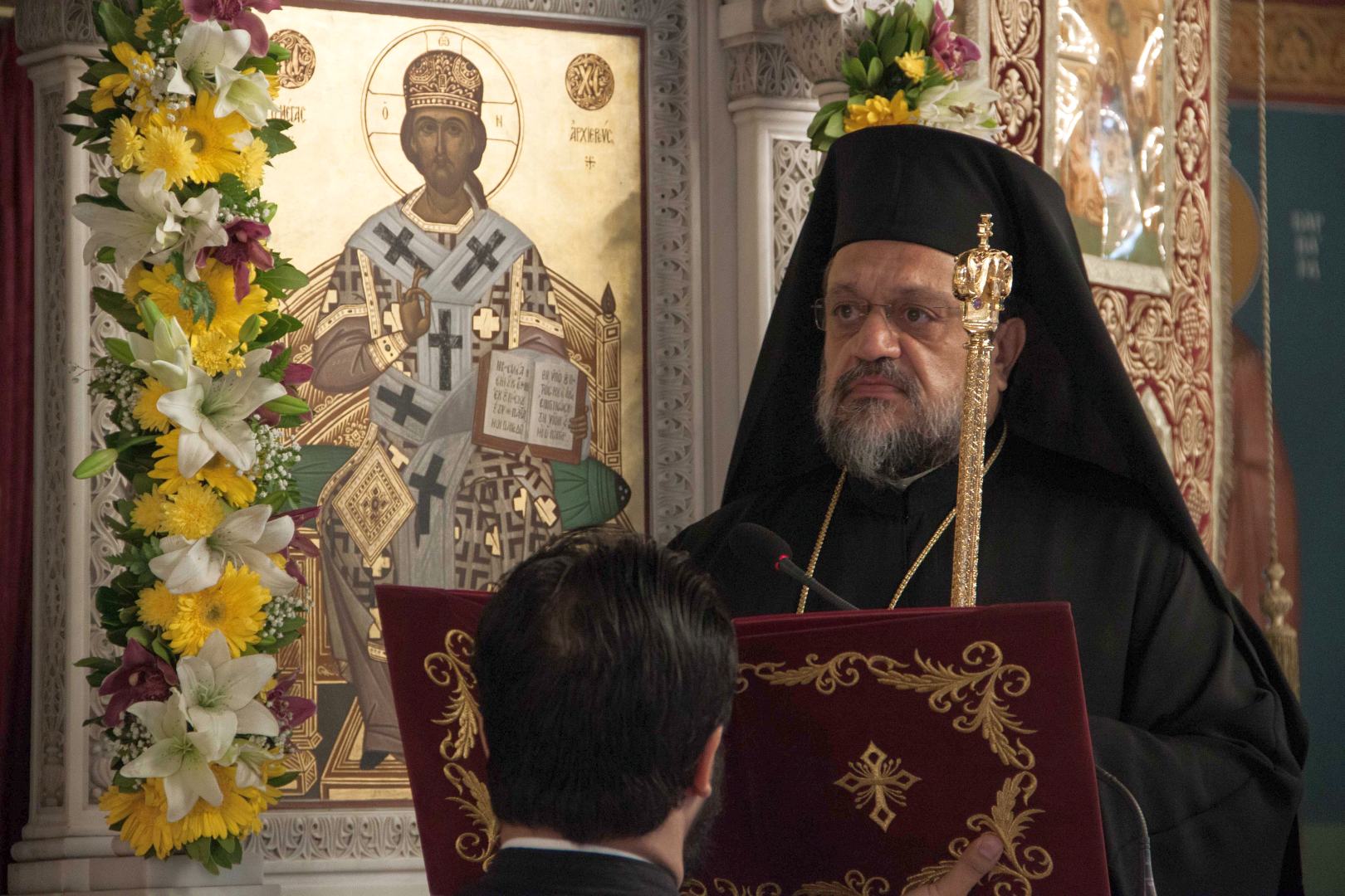 Μετά το πέρας της Θείας Λειτουργίας, ο κ. Αθηναγόρας δέχθηκε τις ευχές των παρευρισκομένων πιστών. Η Θεία Λειτουργία μεταδόθηκε ζωντανά από το ECTV.