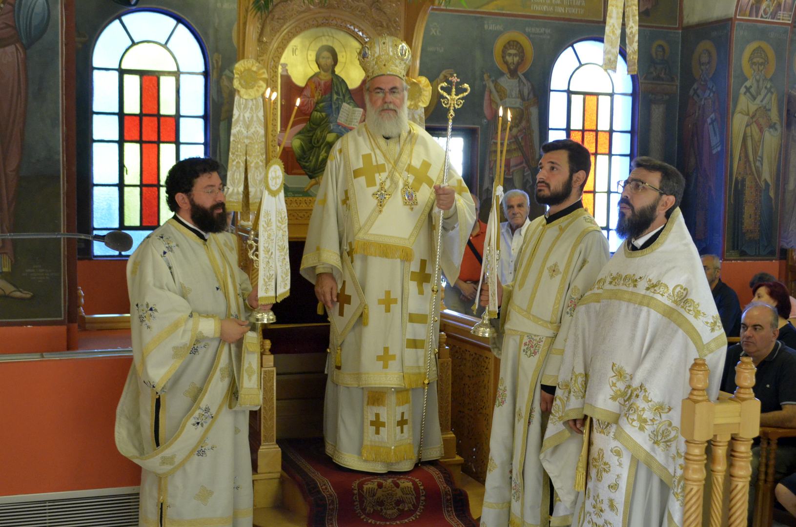 Ο κ. Αθηναγόρας επαίνεσε τον προϊστάμενο Αρχιμανδρίτη Τιμόθεο Αναγνωστάκη και τον εφημέριο του ναού πρεσβύτερο Πέτρο Θεοδοσίου για την οργάνωση της πανηγύρεως.