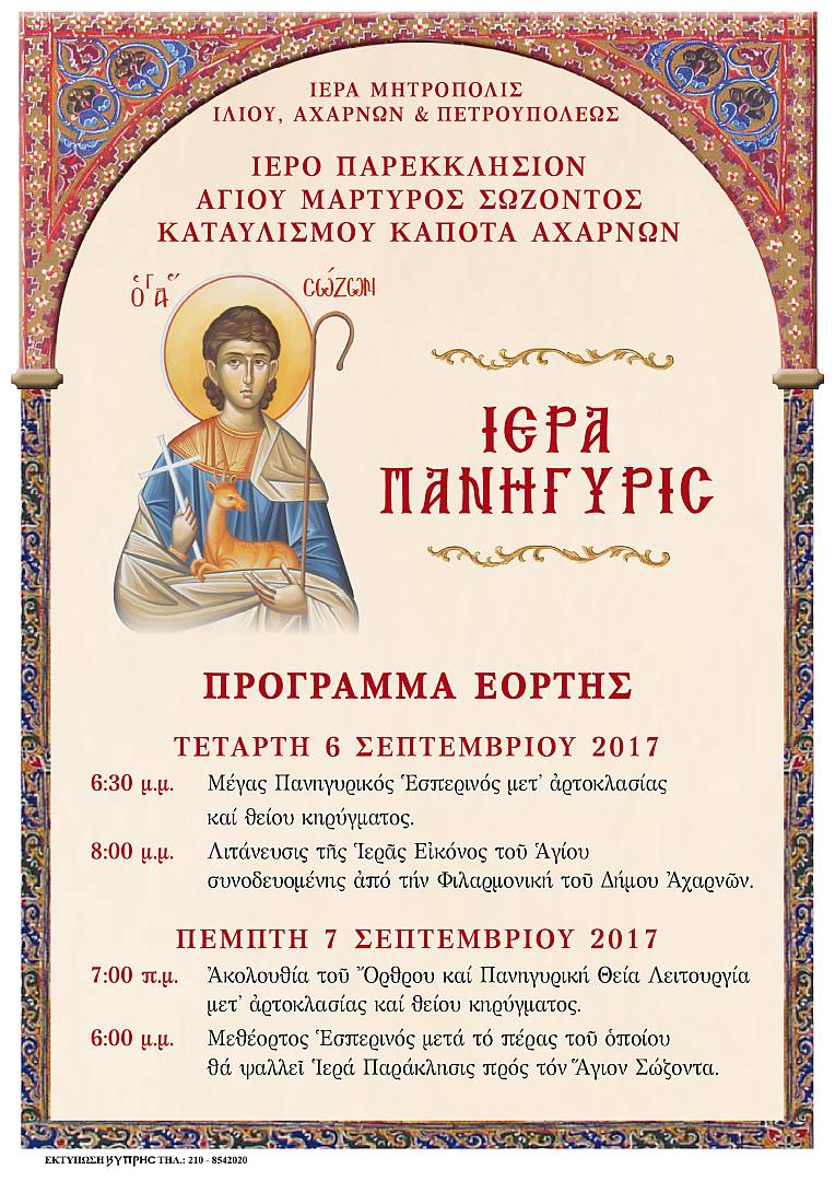 Πανήγυρις Αγ. Σώζοντος Αχαρνών