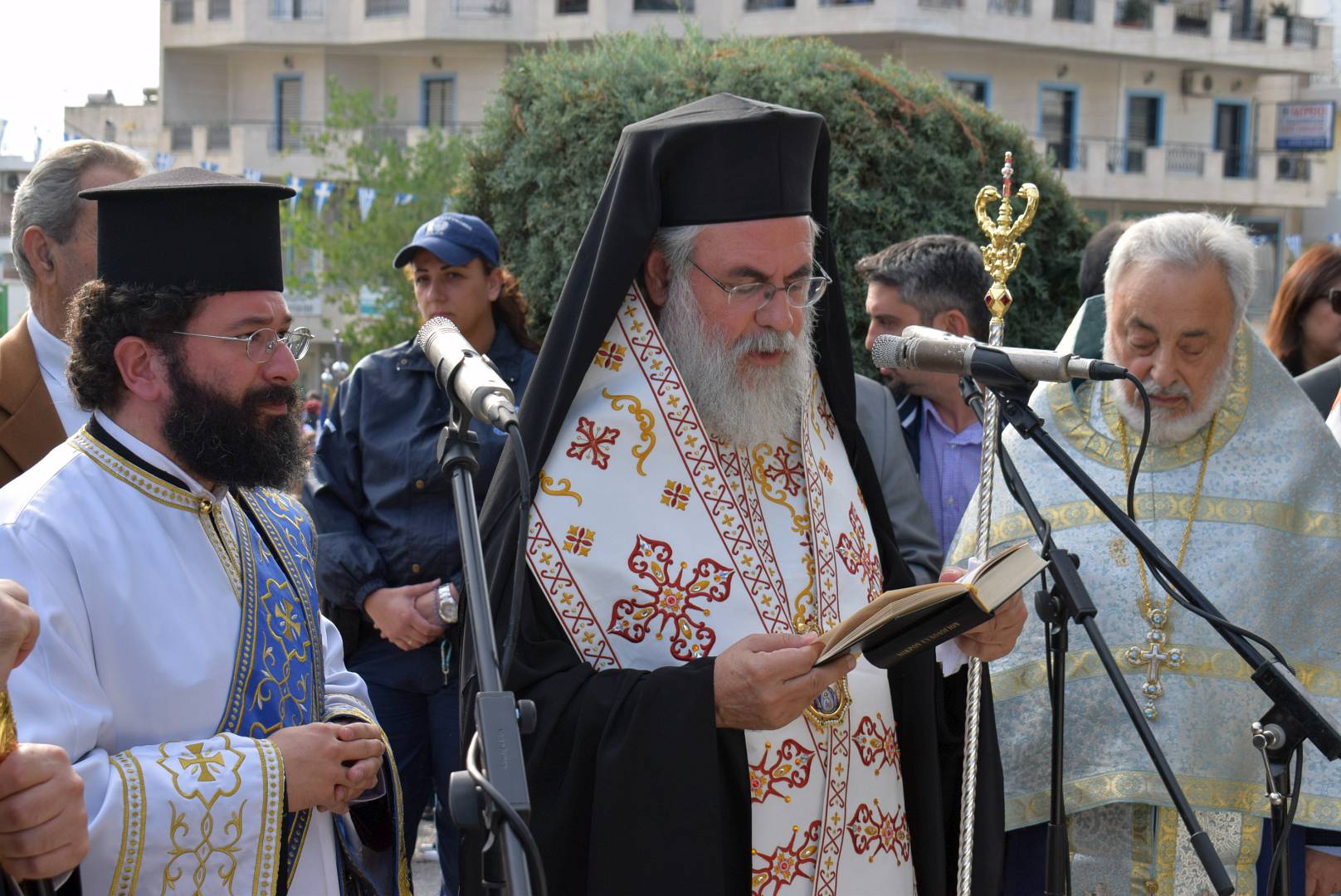 Παρευρέθησαν ο δήμαρχος Πετρουπόλεως κος Ευάγγελος Σίμος, αντιδήμαρχοι, δημοτικοί σύμβουλοι καθώς και οι σημαιοφόροι των σχολείων, μαζί με τους ενορίτες του Αγίου Δημητρίου.