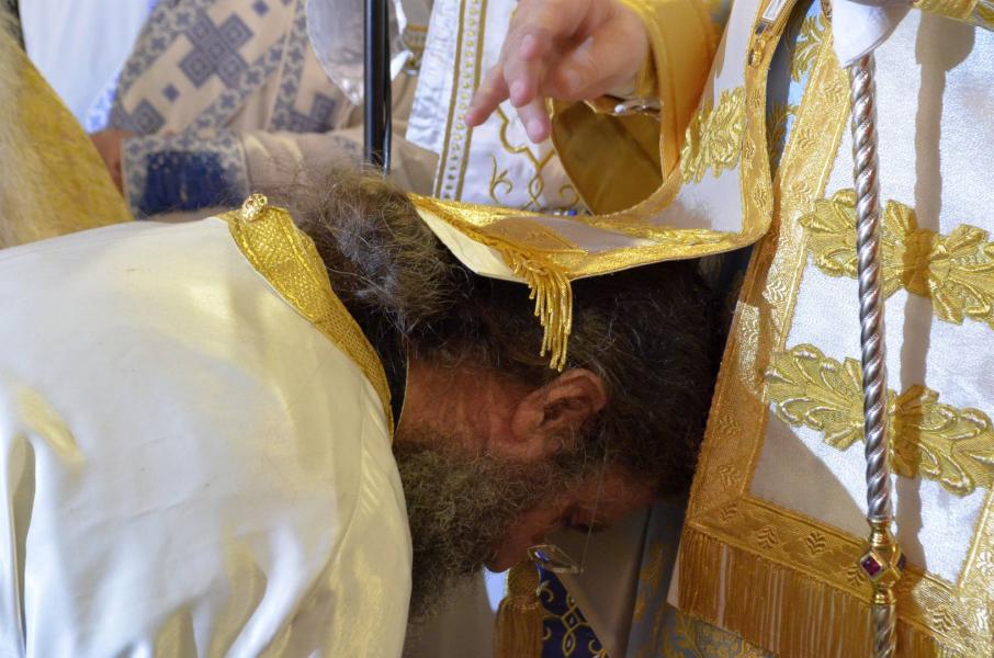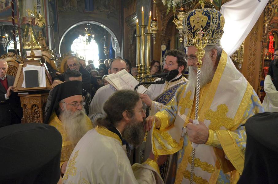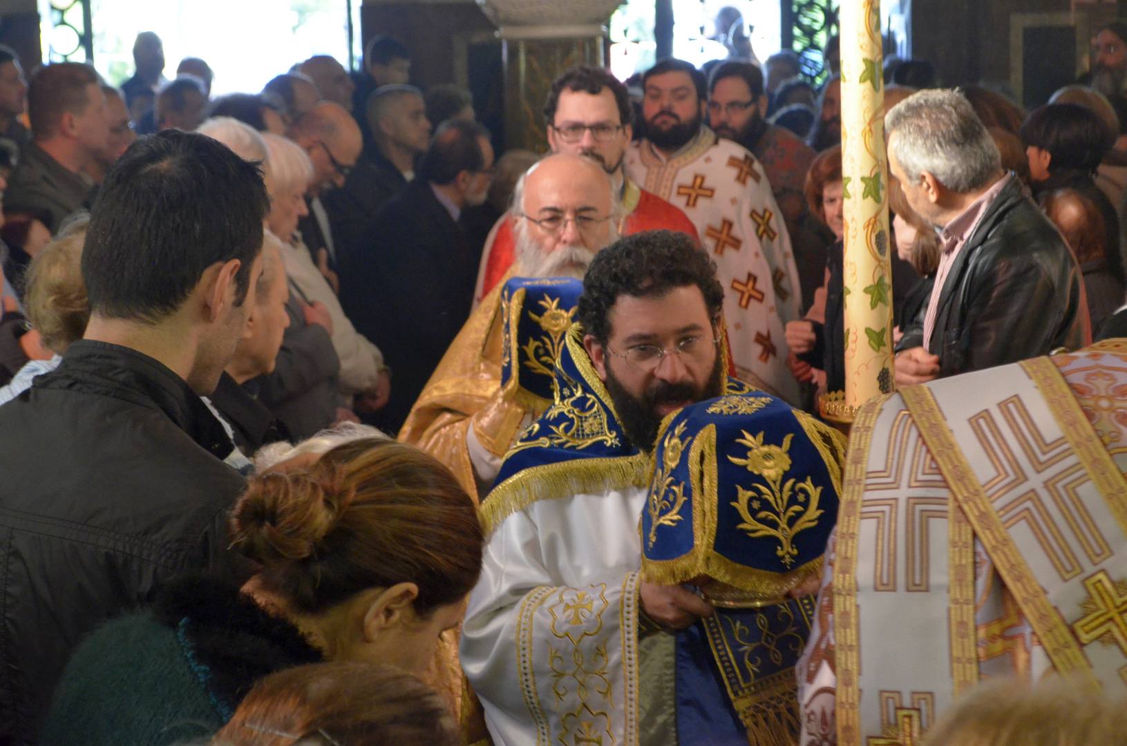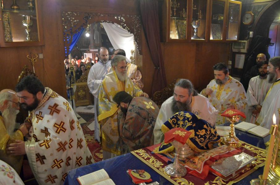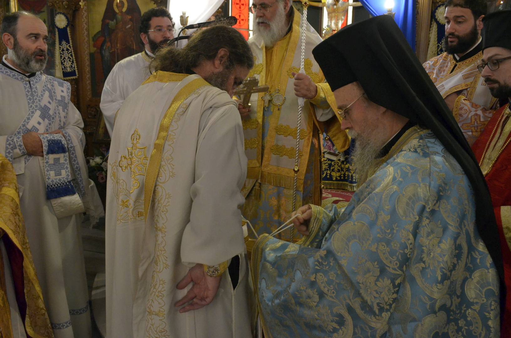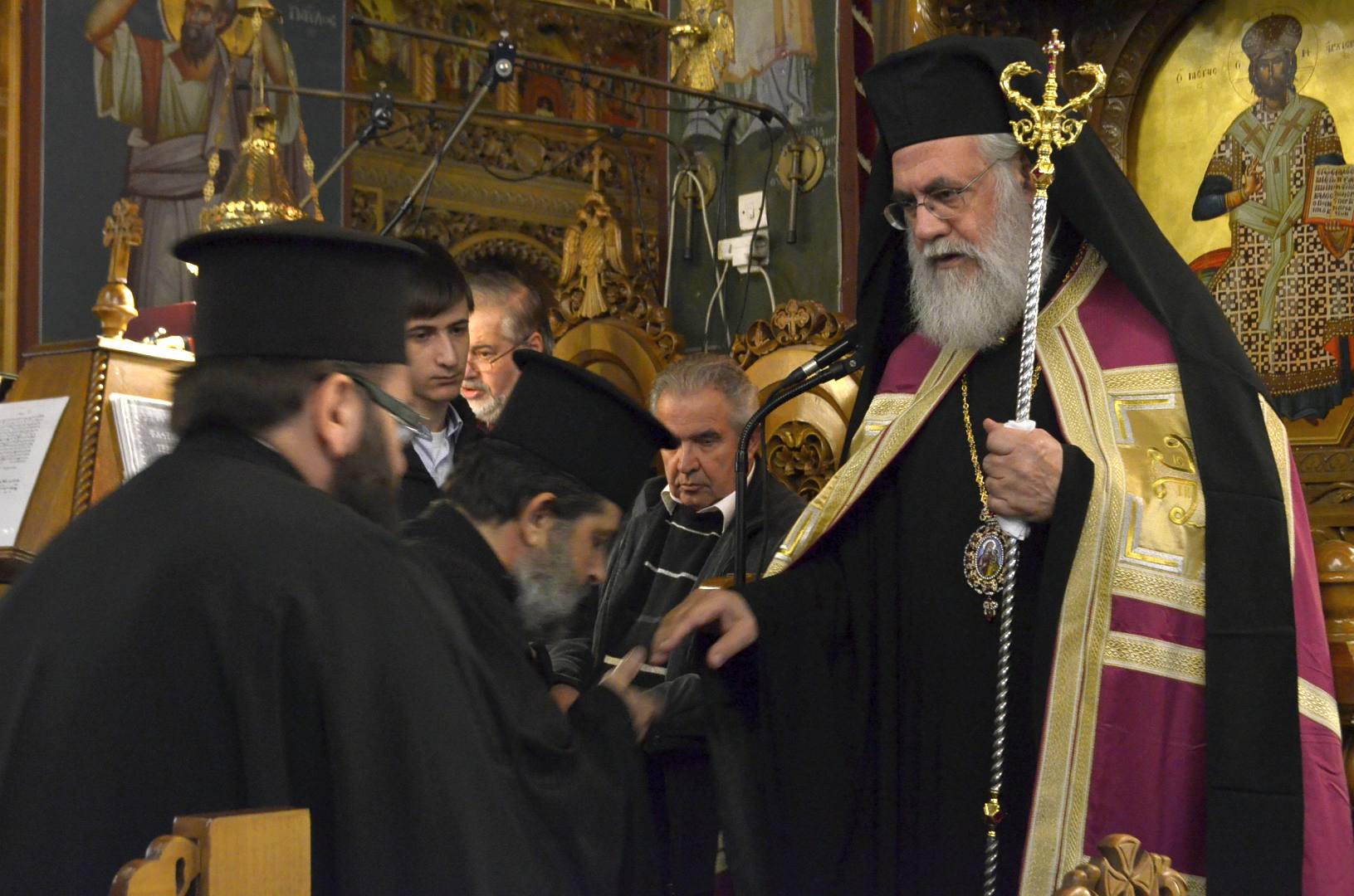 Λίγο πριν την απόλυση ο κ. Αθηναγόρας απένειμε στον εφημέριο του ναού π. Γεώργιο το οφφίκιο του Οικονόμου, επιβραβεύοντας την έως τώρα διακονία του στην ενορία.