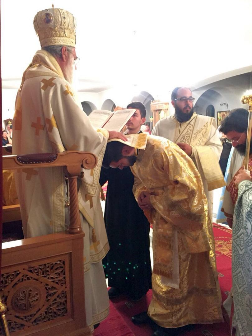 Την χειροτονία τέλεσε ο Σεβασμιώτατος Μητροπολίτης Ιλίου, Αχαρνών και Πετρουπόλεως κ. Αθηναγόρας, συνιερουργούντος του Θεοφιλεστάτου Επισκόπου Χριστιανουπόλεως κ. Προκοπίου.
