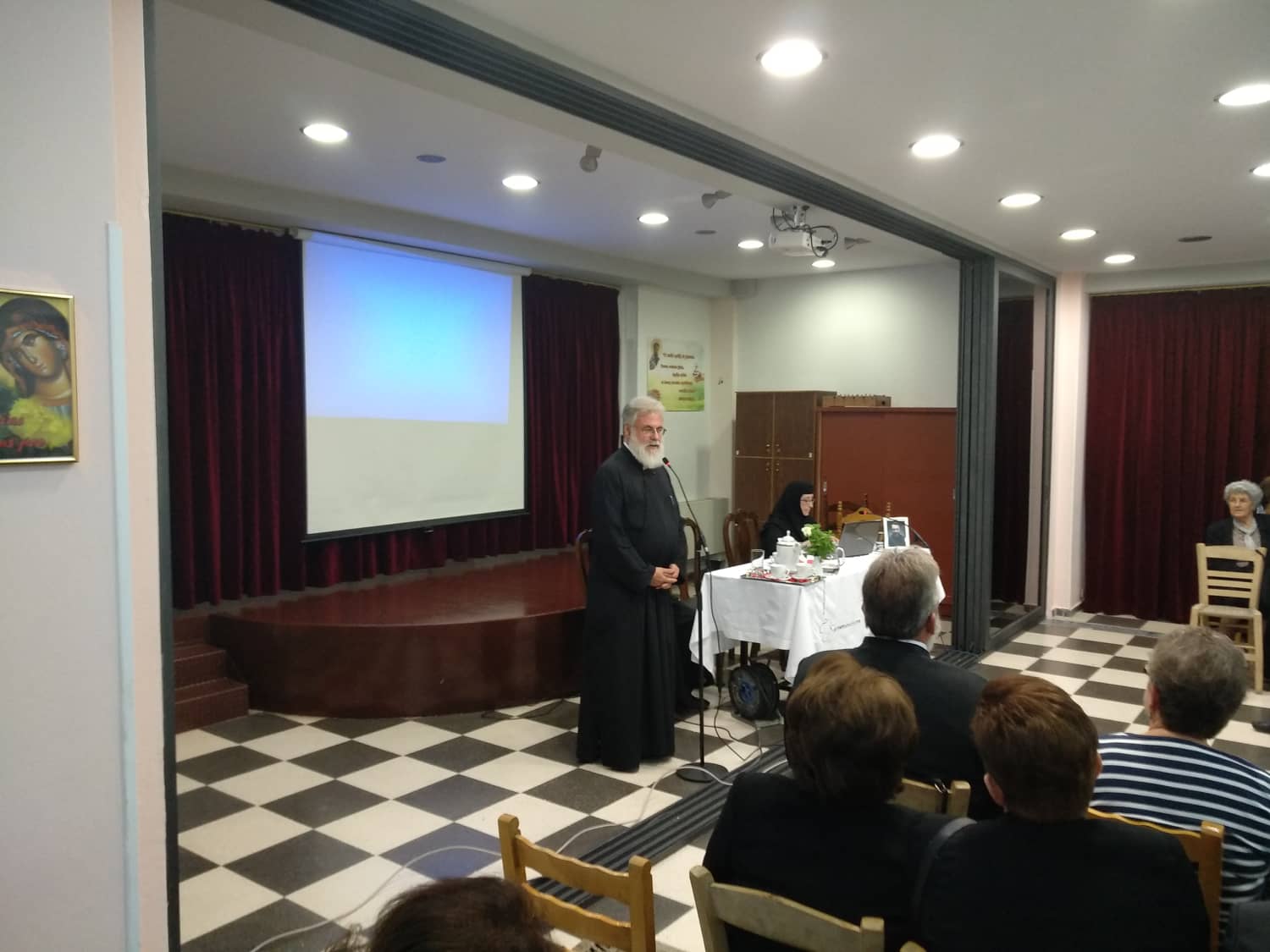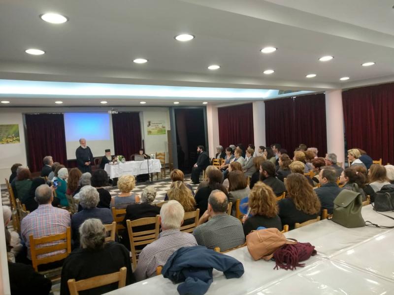 Ομιλήτρια ήταν η καθηγουμένη της Ι.Μ. Αναλήψεως του Σωτήρος Σκούρτων, μοναχή Παρασκευή (Ρούσσου), καθηγήτρια Αιματολογίας του Πανεπιστημίου Αθηνών, και είχε θέμα «Ο ογκολογικός ασθενής τελικού σταδίου: φροντίδα από εκκλησιαστική και ιατρική άποψη».
