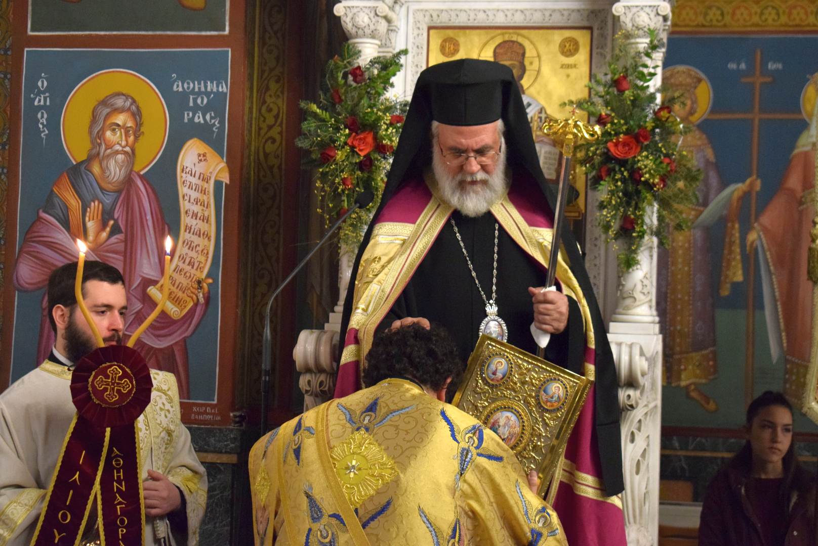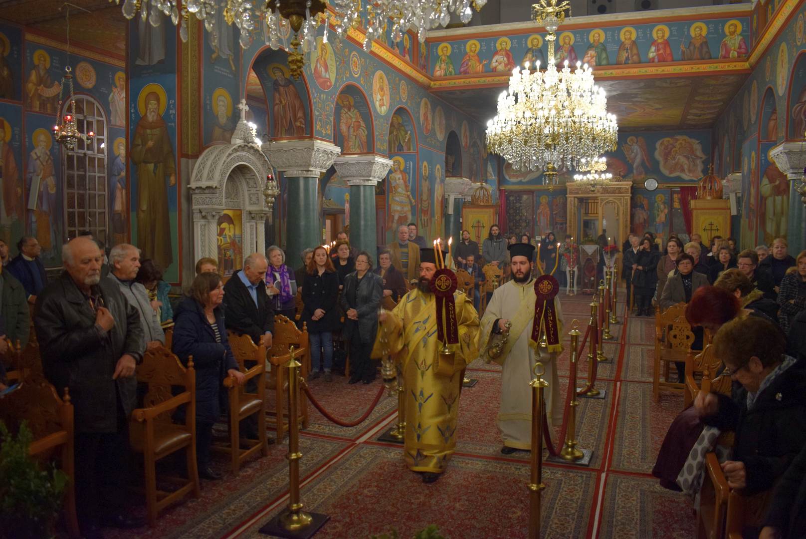 Χοροστάτησε ο Σεβασμιώτατος Μητροπολίτης Ιλίου κ. Αθηναγόρας και συμμετείχαν, εκτός από τους εφημερίους του ναού και τους διακόνους, ο Πρωτοσύγκελλος Αρχιμ. Νικόδημος Αθανασίου και οι ιεροκήρυκες της Μητροπόλεως Αρχιμ. Αγαθάγγελος Κόκλας και Αρχιμ. Ιωαννίκιος Γιαννόπουλος.