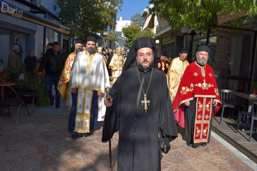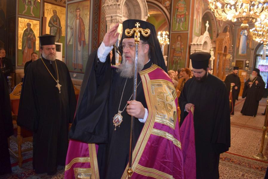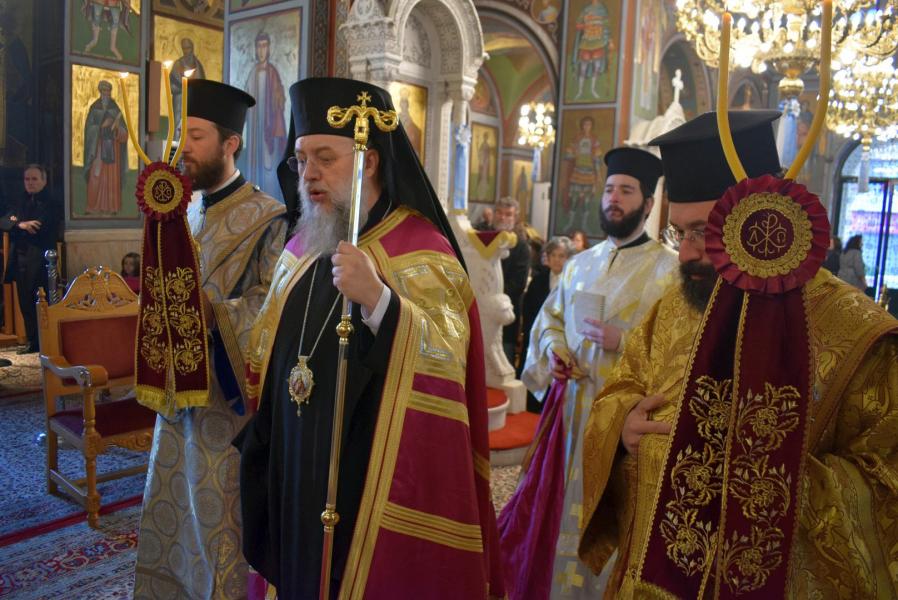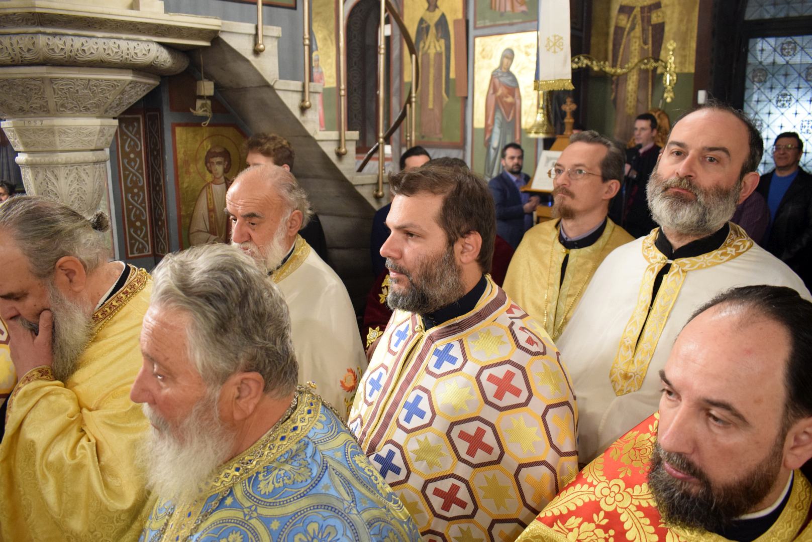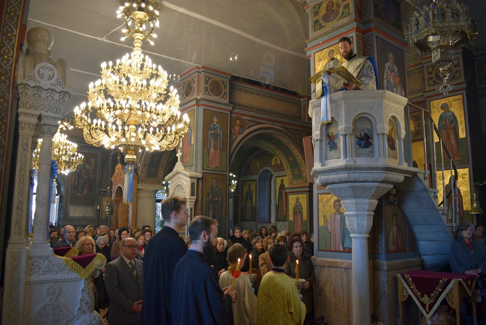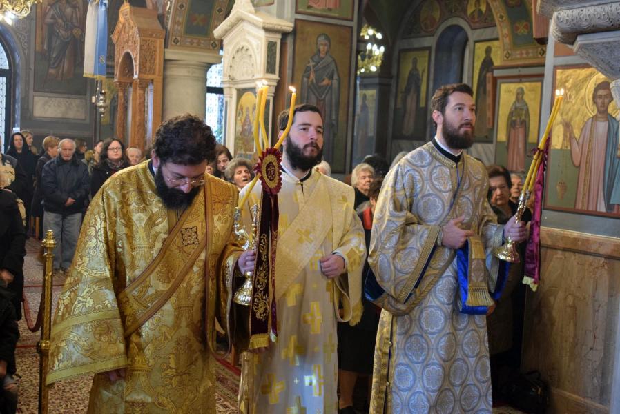 Την κυριώνυμο ημέρα, στην ακολουθία του Όρθρου χοροστάτησε ο Σεβασμιώτατος Μητροπολίτης Κηφισίας, Αμαρουσίου και Ωρωπού κ. Κύριλλος, ενώ στην πολυαρχιερατική Θεία Λειτουργία προεξήρχε ο Σεβασμιώτατος Μητροπολίτης Σερβίων και Κοζάνης κ. Παύλος, συλλειτουργούντων των Σεβασμιωτατών Μητροπολιτών Ηλιουπόλεως Αιγύπτου κ. Θεοδώρου, Κηφισίας, Αμαρουσίου και Ωρωπού κ. Κυρίλλου και του οικείου ποιμενάρχου κ. Αθηναγόρου. Το θείο λόγο κήρυξε ο Σεβασμιώτατος Μητροπολίτης Σερβίων κ. Παύλος ο οποίος αναφέρθηκε στη σημασία της εκκλησίας και της αγιότητας στις μέρες μας.