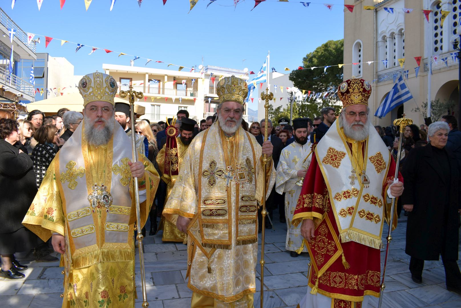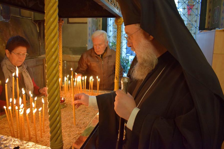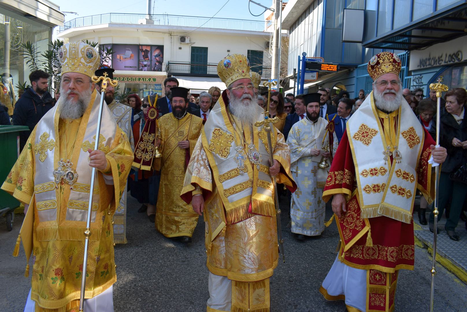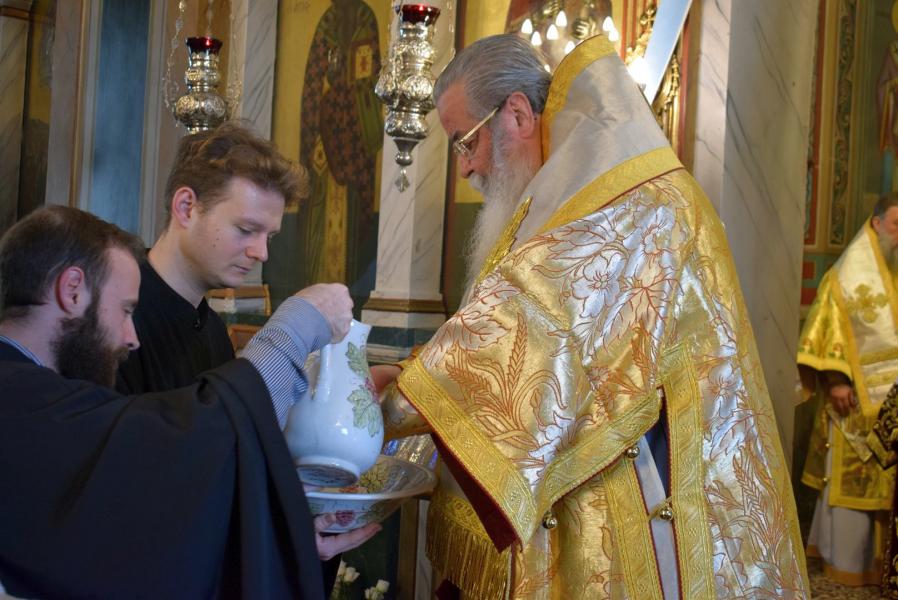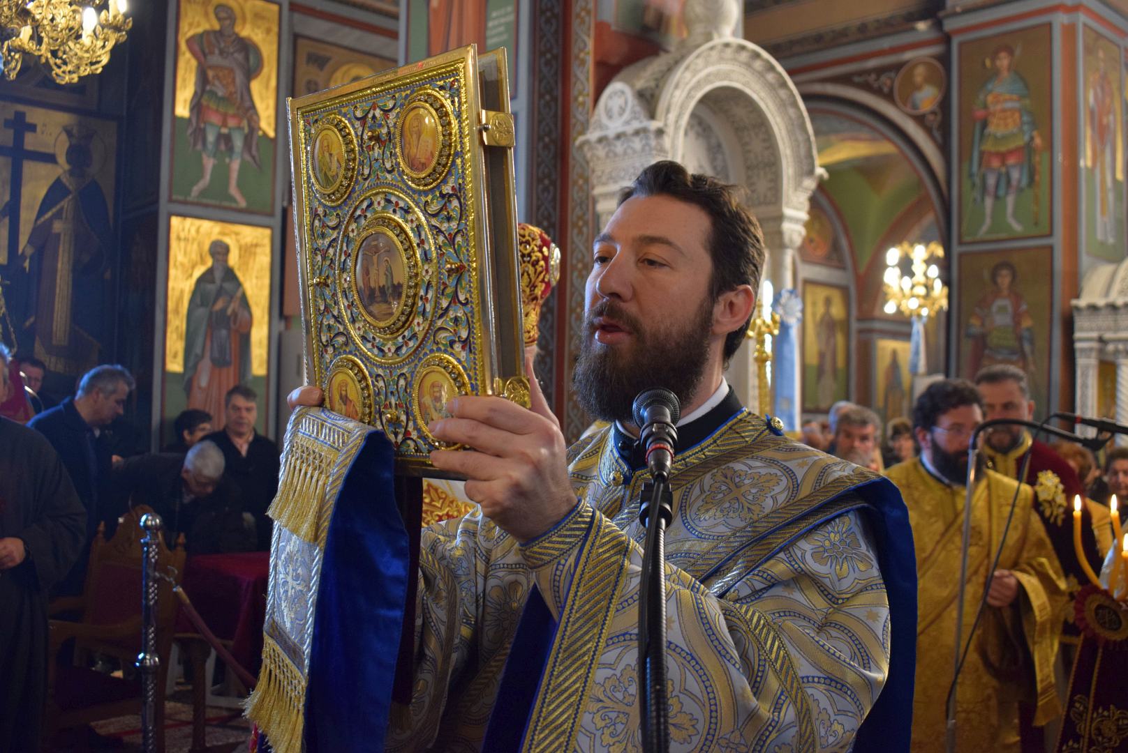 Την κυριώνυμο ημέρα, στην ακολουθία του Όρθρου χοροστάτησε ο Σεβασμιώτατος Μητροπολίτης Κηφισίας, Αμαρουσίου και Ωρωπού κ. Κύριλλος, ενώ στην πολυαρχιερατική Θεία Λειτουργία προεξήρχε ο Σεβασμιώτατος Μητροπολίτης Σερβίων και Κοζάνης κ. Παύλος, συλλειτουργούντων των Σεβασμιωτατών Μητροπολιτών Ηλιουπόλεως Αιγύπτου κ. Θεοδώρου, Κηφισίας, Αμαρουσίου και Ωρωπού κ. Κυρίλλου και του οικείου ποιμενάρχου κ. Αθηναγόρου. Το θείο λόγο κήρυξε ο Σεβασμιώτατος Μητροπολίτης Σερβίων κ. Παύλος ο οποίος αναφέρθηκε στη σημασία της εκκλησίας και της αγιότητας στις μέρες μας.