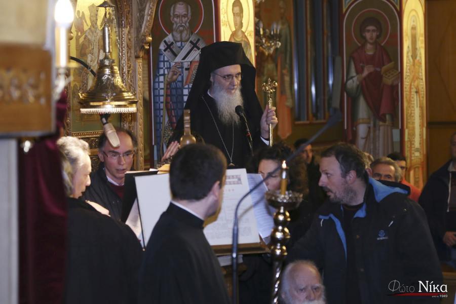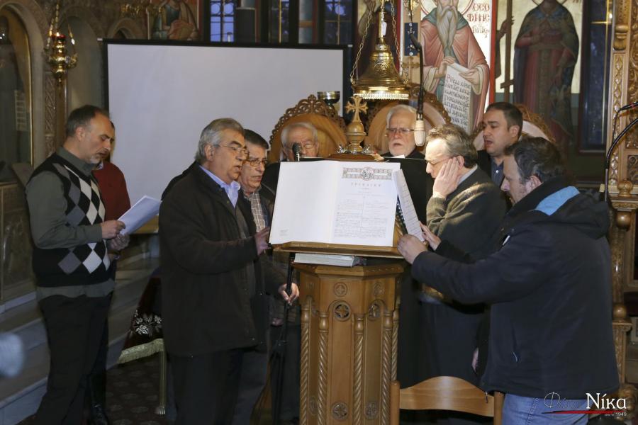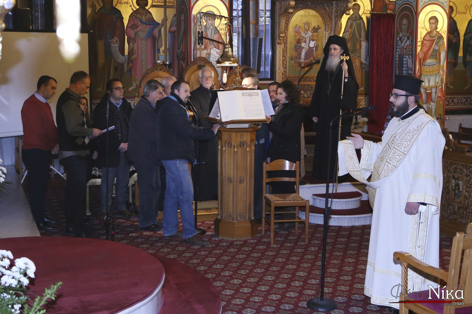 Στον Εσπερινό έψαλε η βυζαντινή χορωδία του Οσίου Δαβίδ του εν Ευβοία και Αγίου Ιακώβου Τσαλίκη, με χοράρχη τον κ. Δημήτριο Καρούζο.