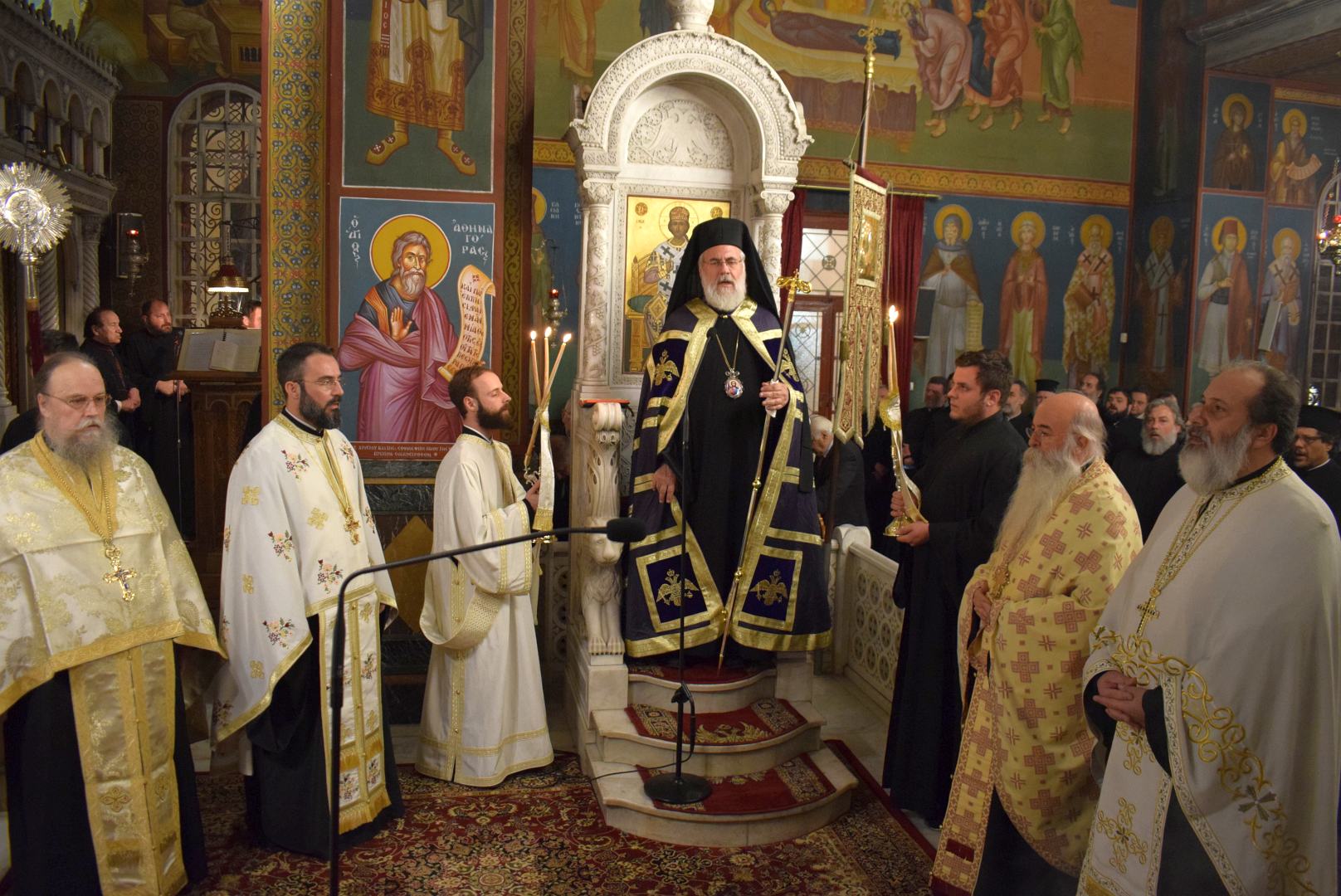 Ο κ. Αθηναγόρας, μέσα στο ιλαρόν φως της επερχόμενης νύχτας, το οποίο συμβολίζει την επερχόμενη «ανέσπερη ημέρα», μίλησε για τη μετοχή των πιστών στη Μεγάλη Τεσσαρακοστή αλλά κυρίως για τη μετοχή των πιστών στη Θεία Ευχαριστία.