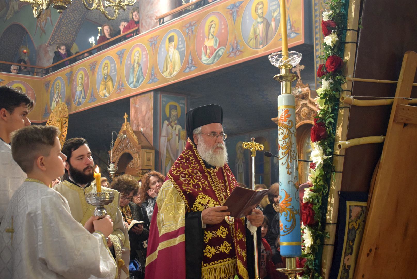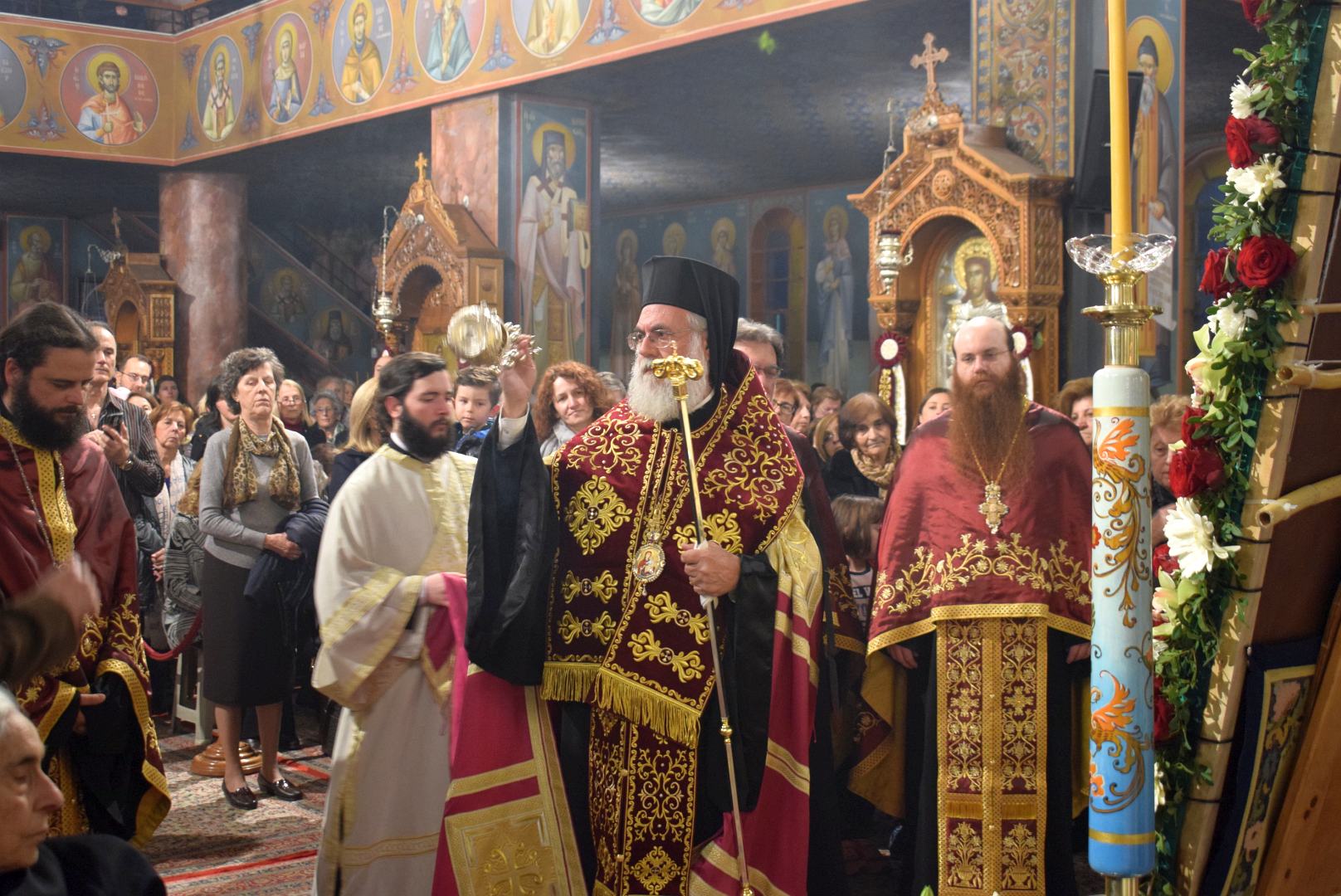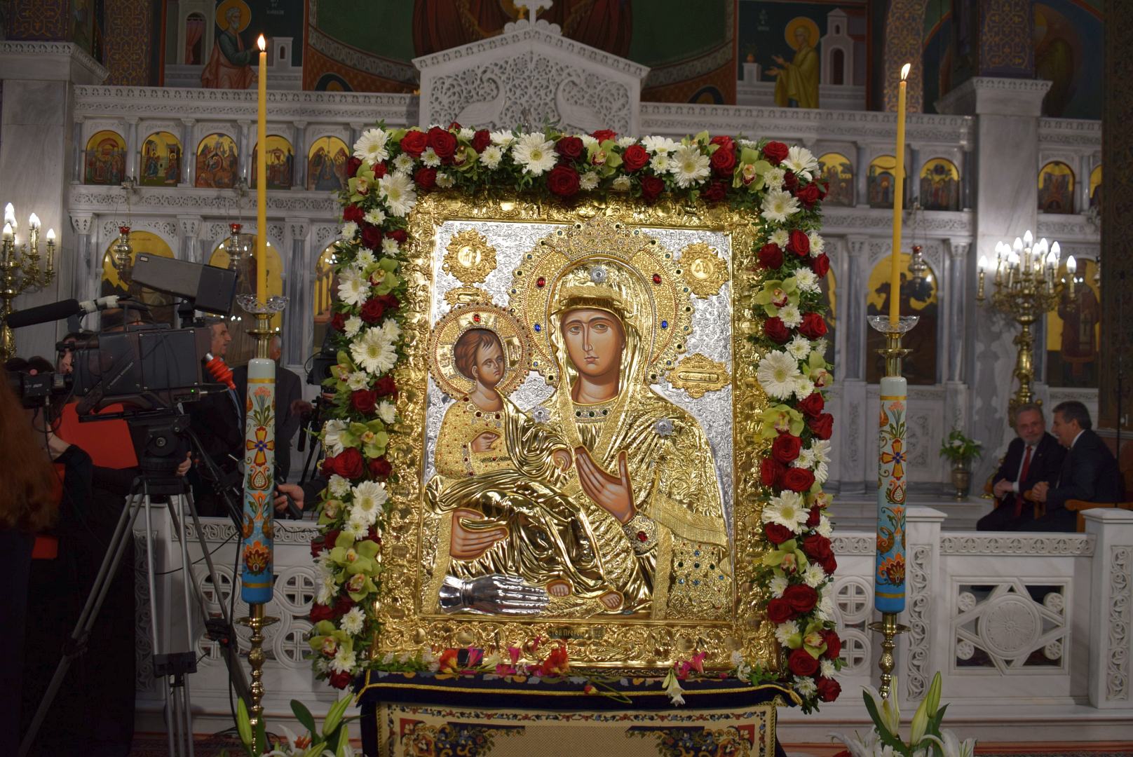 Στην ομιλία που εκφώνησε ο κ. Αθηναγόρας αναφέρθηκε στον στίχο «Χαῖρε, τροφὴ τοῦ μάννα διάδοχε», στον οποίο η Θεοτόκος εικονίζεται ως η τροφή που διαδέχθηκε το μάννα, που δέχθηκαν οι Ισραηλίτες κατά την πορεία τους προς τη γη της Επαγγελίας. Η Θεοτόκος είναι η διάδοχος του μάννα τροφή μέσα στο σήμερα, ή μάλλον είναι εκείνη που κυοφορεί Εκείνον που είναι ο Άρτος που κατεβαίνει από τον Ουρανό για να θρέψει όσους τον αναζητούν. Ο λαός σήμερα «πεινά» για την ελευθερία, για την ασφάλεια στα σύνορα, για την ασφάλεια στην καθημερινότητα, για τη γνώση, για την αγάπη, για την κατάνυξη, για την καταλλαγή, για το καλύτερο αύριο, για τη σωτηρία. Πως θα λυθεί αυτή η «πείνα»; Πως θα λυθεί η υπαρξιακή του «πείνα»; Ο δρόμος που δείχνει η Θεοτόκος είναι εκείνος που θα κορέσει αυτή την «πείνα».