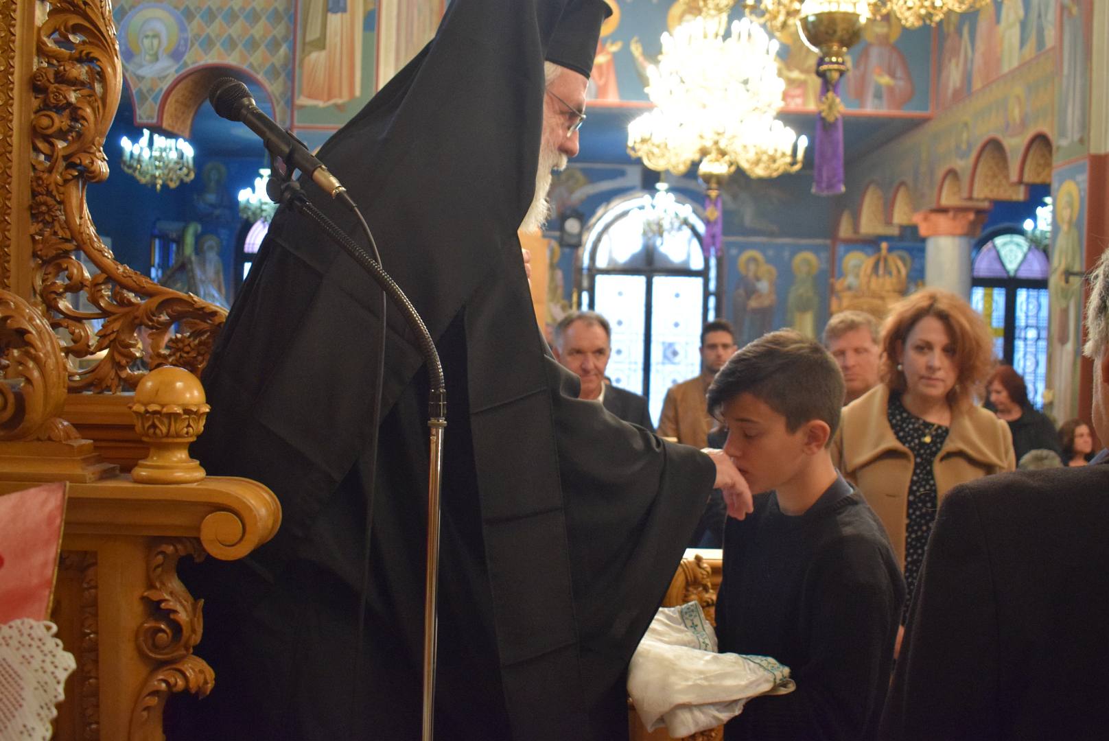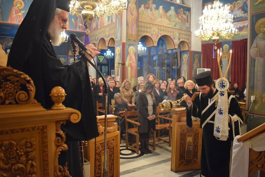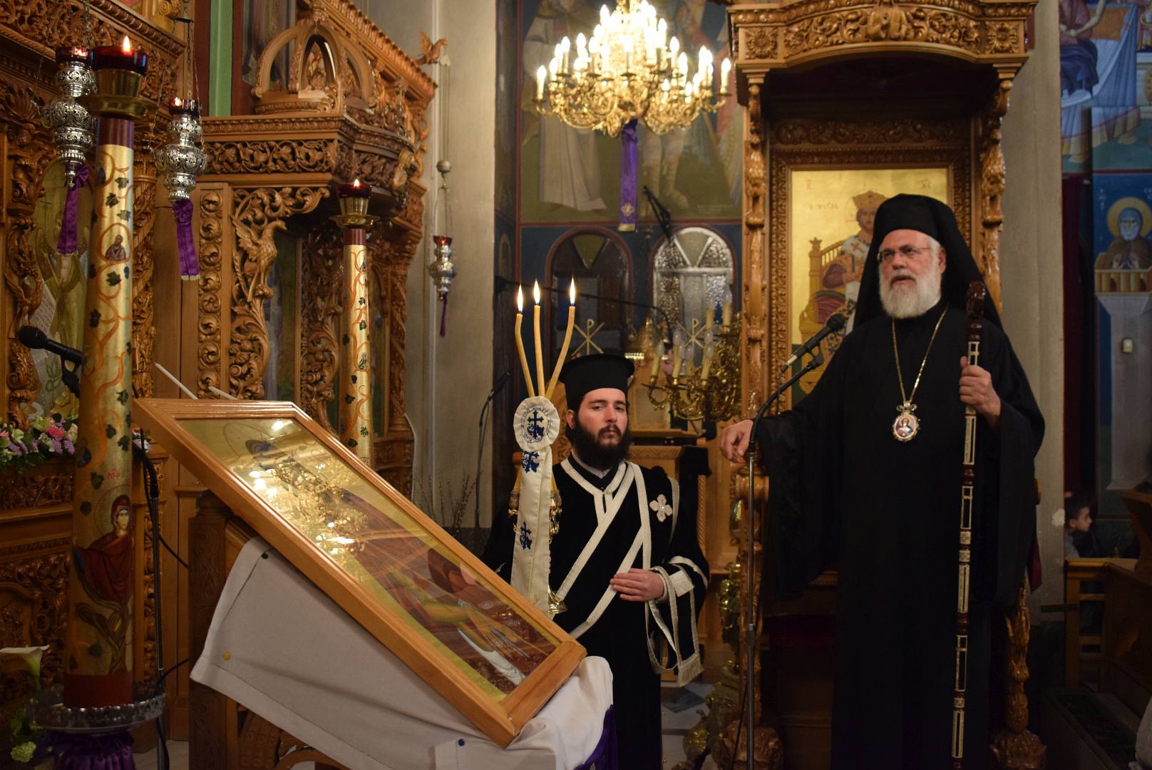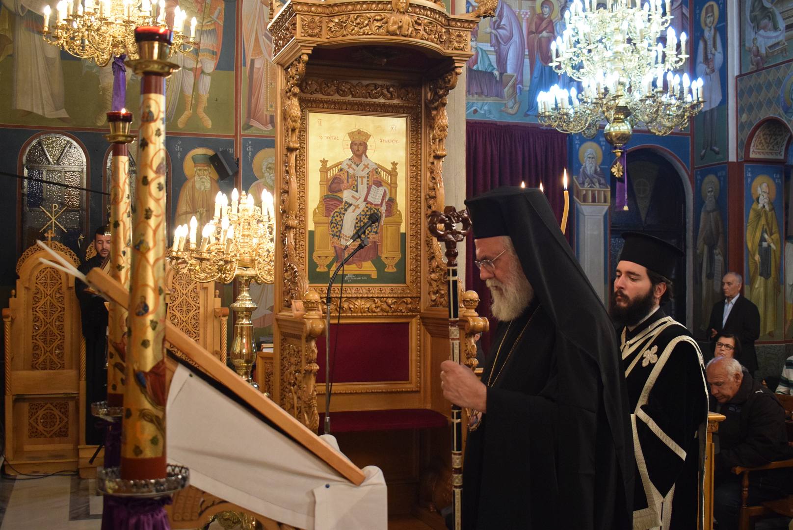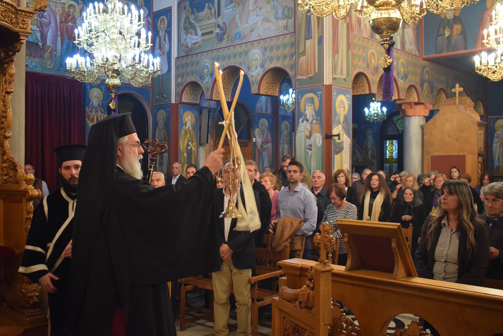Στον Ι.Ν. Κοιμήσεως Θεοτόκου Φυλής χοροστάτησε ο Σεβασμιώτατος Μητροπολίτης Ιλίου κ. Αθηναγόρας κατά την ακολουθία του Νυμφίου, το βράδυ της Μεγάλης Δευτέρας 2019.
