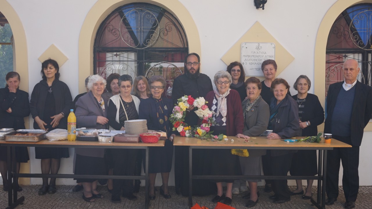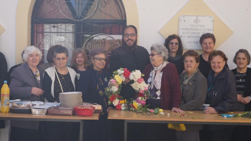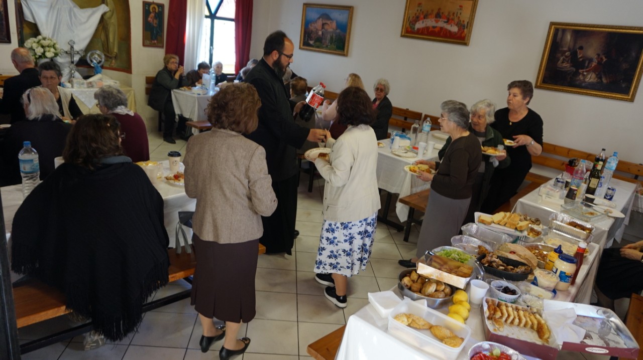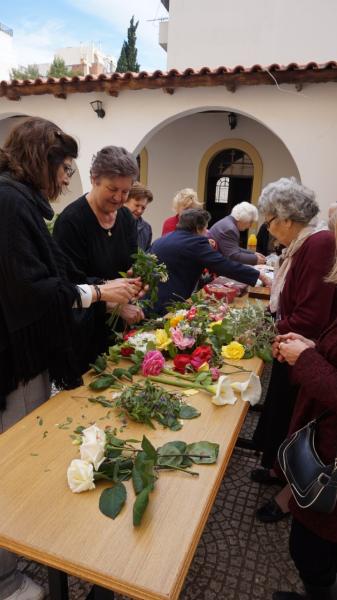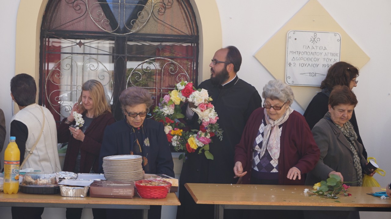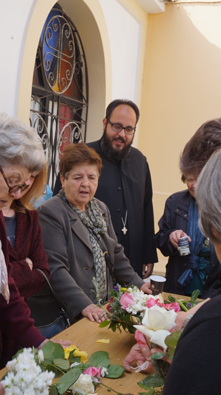 Στον προαύλιο χώρο τελέστηκε η Ακολουθία του Μικρού Αγιασμού και αμέσως μετά όλοι οι ενορίτες «έπιασαν το Μάη», με λουλούδια και στεφάνια. Τέλος παρατέθηκε Τράπεζα Αγάπης εντός του Πνευματικού Κέντρου της Ενορίας, ελπίζοντας να καθιερωθεί η όμορφη αυτή εκδήλωση και στις άλλες χρονιές.