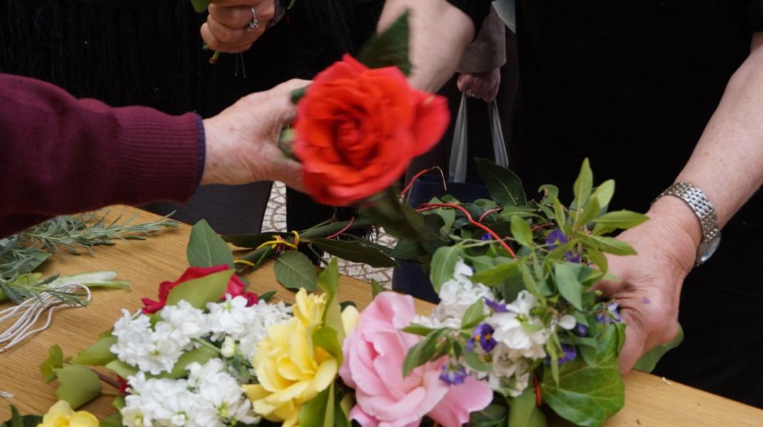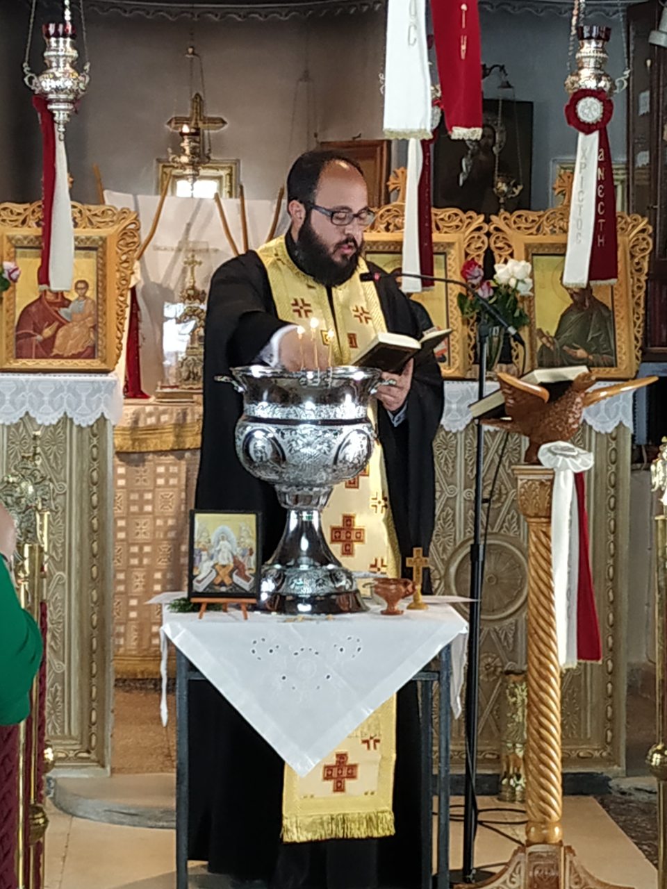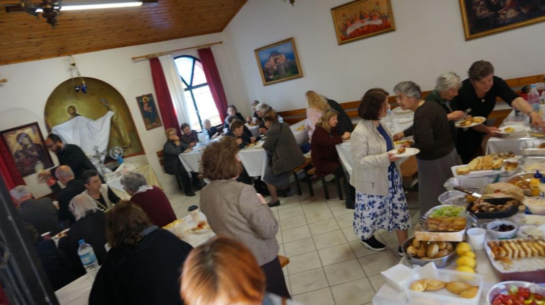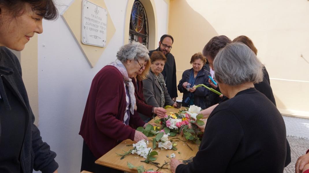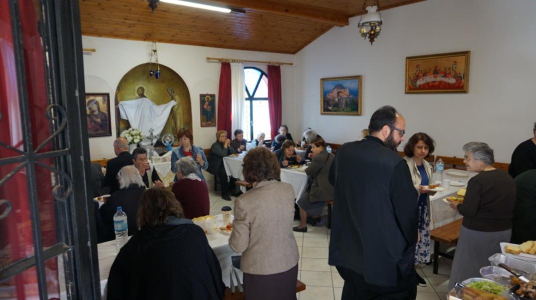 Στον προαύλιο χώρο τελέστηκε η Ακολουθία του Μικρού Αγιασμού και αμέσως μετά όλοι οι ενορίτες «έπιασαν το Μάη», με λουλούδια και στεφάνια. Τέλος παρατέθηκε Τράπεζα Αγάπης εντός του Πνευματικού Κέντρου της Ενορίας, ελπίζοντας να καθιερωθεί η όμορφη αυτή εκδήλωση και στις άλλες χρονιές.