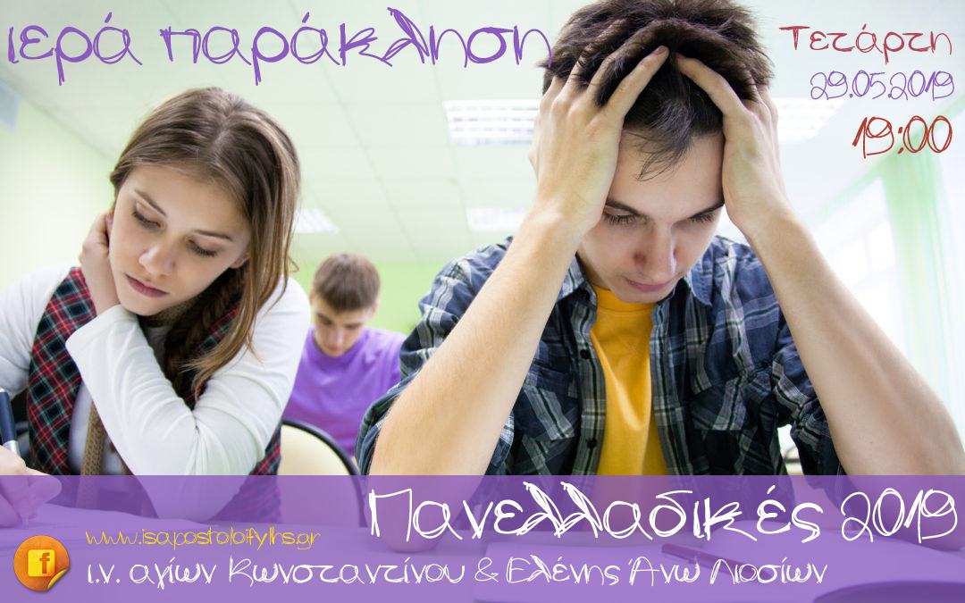 Παράκληση στην Παναγία μας για στήριξη πνευματική σε μαθητές, γονείς και εκπαιδευτικούς θα τελεστεί την Τετάρτη 29 Μαΐου 2019 στις 7μ.μ., στον Ιερό Ναό Αγίων Κωνσταντίνου και Ελένης Άνω Λιοσίων.