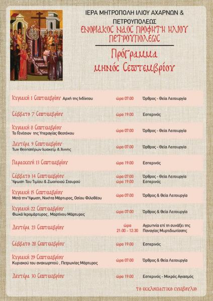 Πρόγραμμα ακολουθιών Προφ. Ηλιού Πετρουπ.