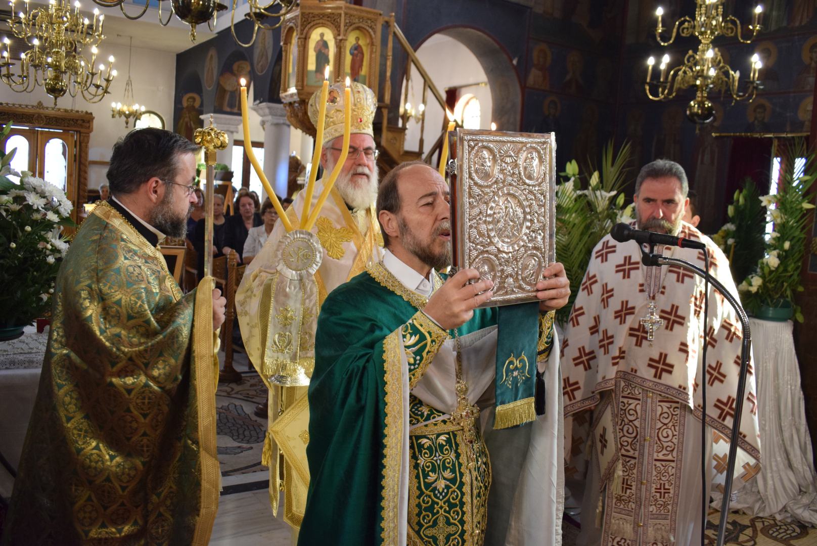 Μία ημέρα μετά την εορτή της Υψώσεως, η οποία συνέπεσε φέτος με την Κυριακή μετά την Ύψωση του Τιμίου Σταυρού, ο κ. Αθηναγόρας βρέθηκε στην κεντρική ενορία των Άνω Λιοσίων, η οποία ως δεύτερη πανήγυρη εορτάζει αυτή την Ύψωση του Τιμίου Σταυρού. Ο Σταυρός του Κυρίου βρέθηκε από την προστάτιδα της ενορίας, Αγία Ελένη, με τη φροντίδα του Αγίου και Μεγάλου Κωνσταντίνου.