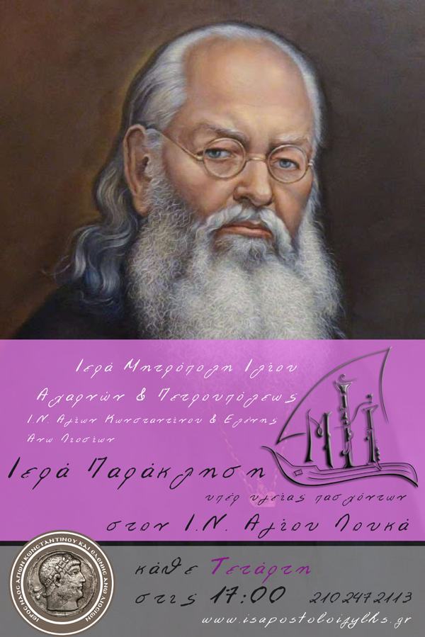 Ιερά Παράκληση στον Άγιο Λουκά τον Ιατρό, Επίσκοπο Συμφερουπόλεως της Κριμαίας τελείται κάθε Τετάρτη και ώρα 17:00 στον ομώνυμο ναό, στα Άνω Λιόσια.