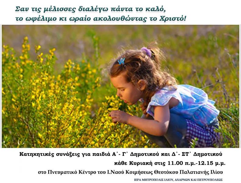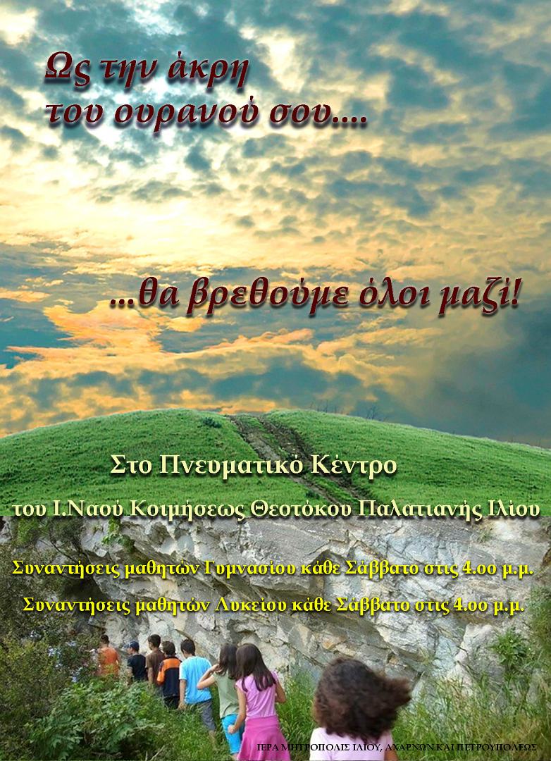 • Συναντήσεις μαθητών: Δημοτικού (Κυριακή 11:00), Γυμνασίου και Λυκείου (Σάββατο 16:00)