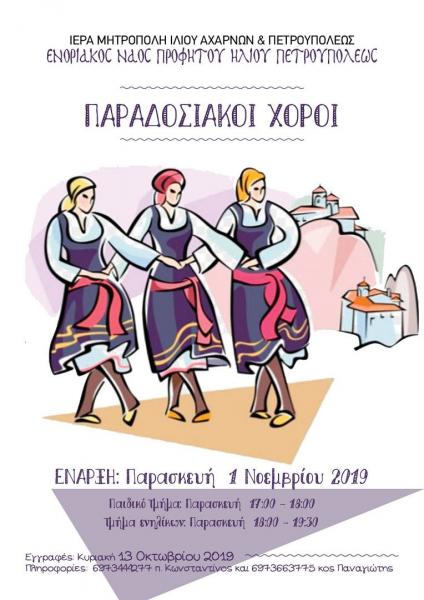 Επίσης, από την Παρασκευή 1 Νοεμβρίου 2019 ξεκινούν τα τμήματα παραδοσιακών χορών: